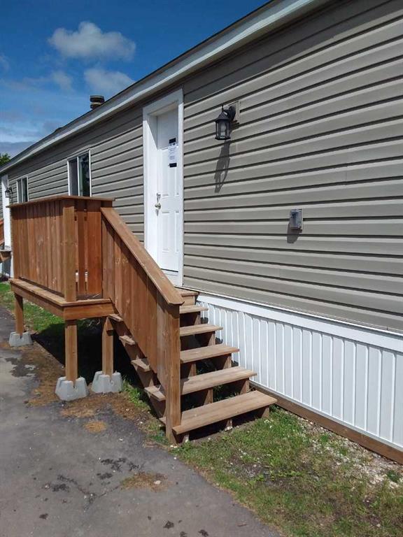 NEW, LOWER PRICE. Affordable living at its best! Available immediately! This is a 3 bedroom, 2 bath beauty including double vanity sinks in the primary ensuite. It has been refurbished with stylish vinyl plank flooring throughout and completely repainted. The bright kitchen has luxurious white cabinets, a huge peninsula and stainless steel appliances – a double door fridge with freezer drawer, glass top stove and built-in dishwasher. A dryer is included. Every inch of this home is clean and fresh! The exterior has been reclad in maintenance free vinyl siding plus a steel roof. New, double paned vinyl windows add to the comfort. This unit is located a short distance to the clubhouse which features a community gathering area with kitchen, a modern exercise room, an 8-ball pool table and games room plus common area playground and bbq area. Calgary Village is a quiet, family friendly community. Financing available at great rates upon approval. Beyond the purchase price, all sites in the park rent for $1,299 per month which includes water, sewer, garbage removal and clubhouse amenities. The clubhouse offers a modern exercise room, a games room with pool table, common areas with large screen t.v., community kitchen, bbq’s and children’s playground. There are no additional costs for these amenities. Although this sounds high, it includes many amenities not available at other parks.