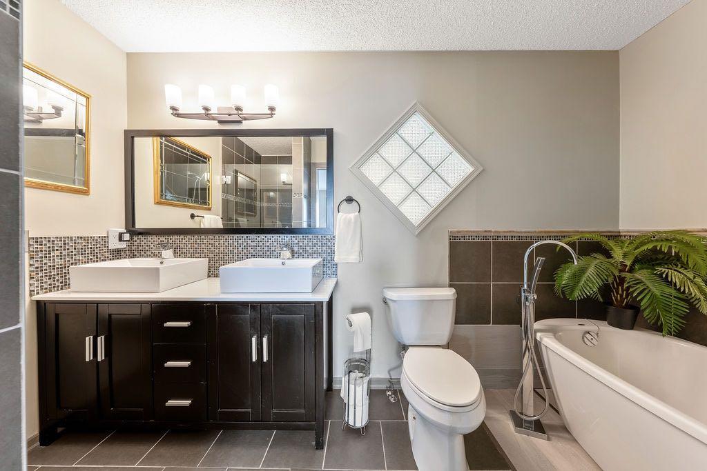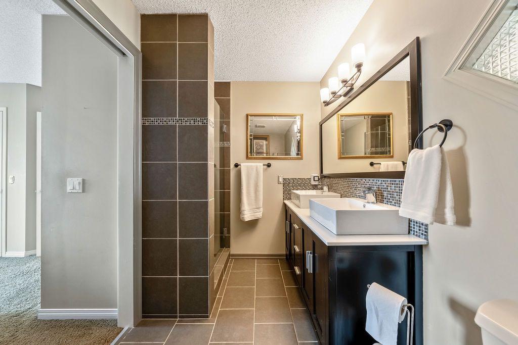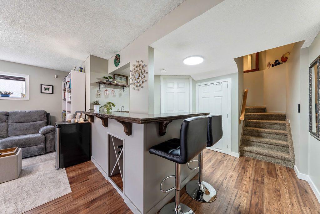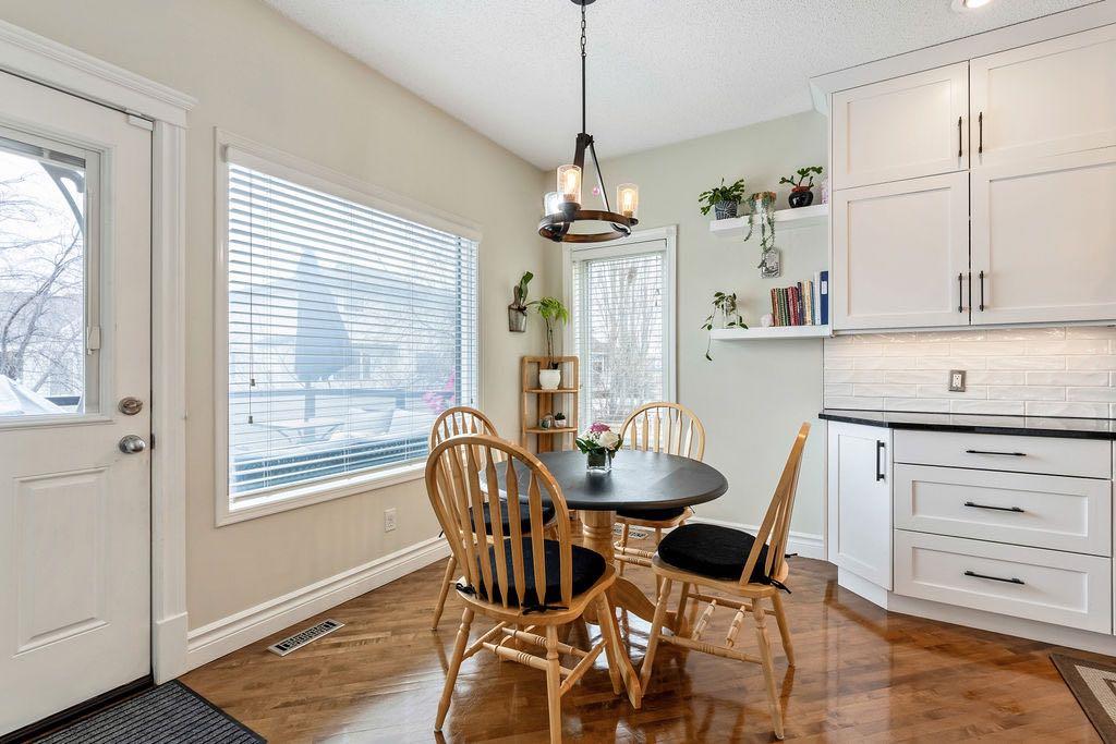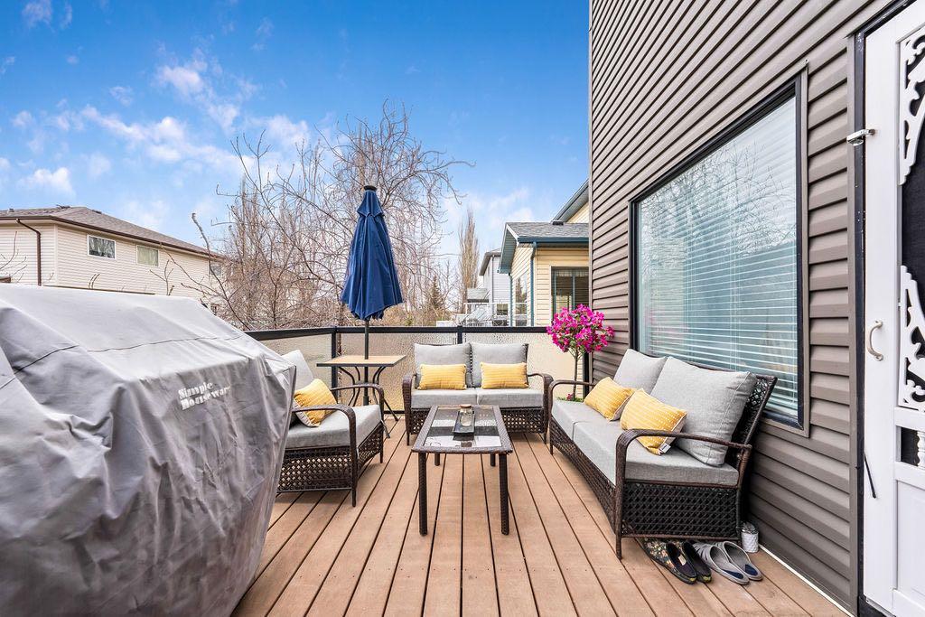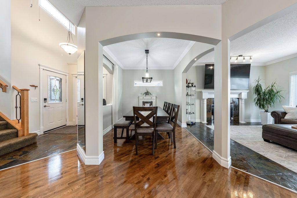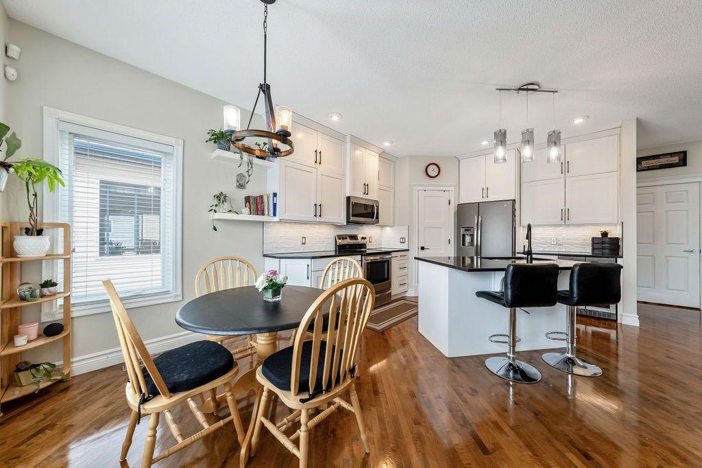 **Open House Sunday May 3rd 1pm-3pm** Welcome to this spacious and well-appointed two-storey walkout offering over 2,900 sq ft of developed living space, with seamless indoor-outdoor flow designed for real family living. Step inside to a bright and inviting main floor featuring hardwood flooring, 9’ ceilings, and elegant archways that blend open-concept flow with defined living spaces. The renovated kitchen offers white cabinetry, black granite countertops, stainless steel appliances, a corner pantry, central island, and beverage fridge—perfect for busy family life. A sunny breakfast nook opens onto the upper deck, making outdoor meals and gatherings easy. The main floor also includes a cozy living room with gas fireplace, formal dining area, laundry, ½ bath, and access to the double attached garage with 8’ door for larger vehicles. Upstairs, you’ll find three well-sized bedrooms, including a primary retreat with walk-in closet and a 5-piece ensuite with freestanding tub. A large bonus room with a second gas fireplace provides the ideal space for movie nights, playtime, or simply relaxing together at the end of the day. The fully developed walkout basement adds even more flexibility with a fourth bedroom, full bath, wet bar, storage, and a generous recreation area with a third gas fireplace—perfect for teens, guests, extended family or home business. Step outside to a beautifully landscaped, tiered backyard with extensive stonework, multiple seating areas, and a private hot tub—creating a space the whole family can enjoy. Located in an established community close to parks, pathways, shopping, and within walking distance to multiple schools, this home offers the space, comfort, and everyday convenience growing families are looking for.