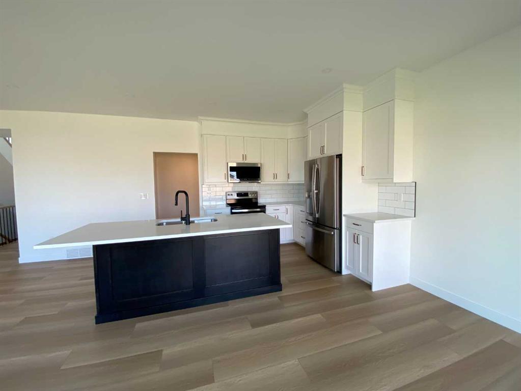 Modern Comfort Meets Thoughtful Design. Welcome to 4 Williams Avenue—a beautifully crafted, brand-new home that seamlessly blends comfort, style, and convenience in the heart of Olds. Designed with both functionality and elegance in mind, this residence features 4 spacious bedrooms, 4 bathrooms, and sun-filled living spaces. The main floor showcases a bright open-concept layout, centered around a contemporary kitchen with a large island—perfect for casual dining or entertaining. The adjacent dining area leads through a west-facing patio door to a covered deck complete with a gas BBQ hookup, ideal for enjoying evening sunsets. The living room offers a warm and welcoming space, perfect for hosting guests or unwinding after a long day. This level also includes a stylish 2-piece powder room, a practical boot room, and access to the double attached garage, equipped with in-floor heating and pre-wired for an EV charger. Upstairs, the spacious primary suite offers a private retreat, featuring a generous walk-in closet and a sleek 4-piece ensuite. Two additional bedrooms share another well-appointed 4-piece bathroom, while a conveniently located laundry room completes the upper level. The fully finished basement provides even more living space, built with energy-efficient ICF walls and in-floor heating for year-round comfort. This level includes a cozy family room, a fourth bedroom, and an additional 4-piece bathroom—ideal for guests or extended family. High-end finishes throughout the home include durable vinyl plank flooring and elegant quartz countertops, combining low maintenance with modern style. Take in scenic horizon mountain views that add a stunning natural backdrop to your daily life. Built with sustainability in mind, this home is solar-ready—future-proofed for energy-efficient living. Whether you’re looking for your forever home or a welcoming retreat, this property offers the perfect opportunity to live comfortably in a thriving, family-friendly community, close to schools. Don’t miss your chance—book your showing today and discover all that this property has to offer!