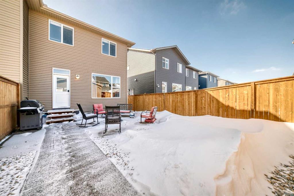Why wait to build when you can move right in? This beautifully maintained, like-new D’Arcy Ranch side by side offers nearly 2,100 sq. ft. of fully developed living space, including a professionally finished basement, and has been meticulously cared for inside and out. From the moment you step inside, you’ll appreciate the luxury vinyl plank flooring and welcoming living room featuring a cozy built-in fireplace. The open-concept main floor flows seamlessly into the stunning kitchen, complete with two-tone cabinetry, soft-close drawers, quartz countertops, and upgraded finishes throughout. A bright dining area overlooks the fully landscaped backyard through a large picture window, while a stylish two-piece bathroom completes the main level. Upstairs, you’ll find two spacious secondary bedrooms, an upgraded main bathroom, convenient upper-floor laundry, and a generous primary retreat with a beautifully upgraded ensuite. The fully finished basement is equally impressive, featuring 9-foot ceilings, oversized windows, and vinyl plank flooring, creating a bright and open feel. This level includes a bedroom, full bathroom, recreation room, and ample storage. Outside, enjoy the fully landscaped backyard—perfect for relaxing or entertaining—along with a brand-new heated, detached double garage, offering excellent parking and storage. Ideally located close to shopping, playgrounds, walking paths, bike trails, D’Arcy Ranch Golf Course, and within walking distance to downtown Okotoks, this home truly offers the best of convenience and lifestyle. Move-in ready, impeccably maintained, and loaded with upgrades—this is the one you’ve been waiting for.