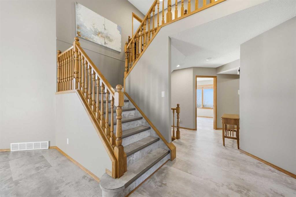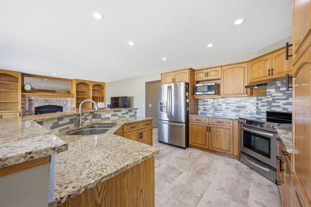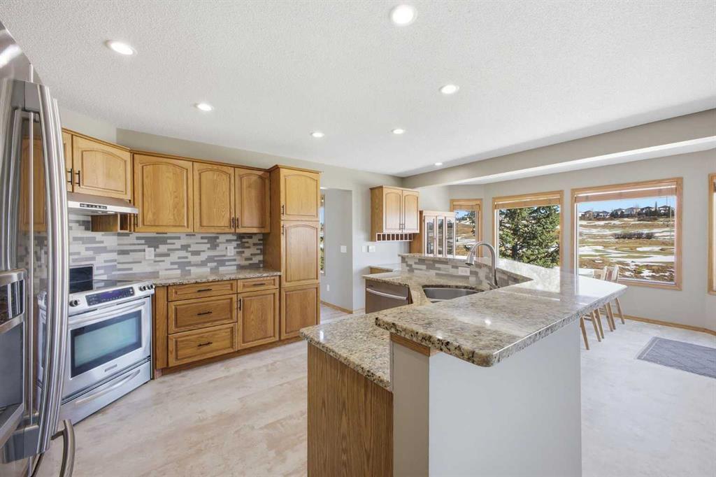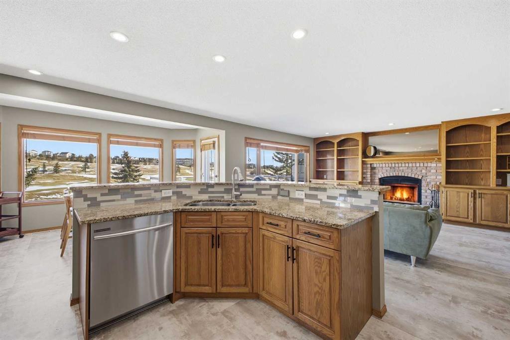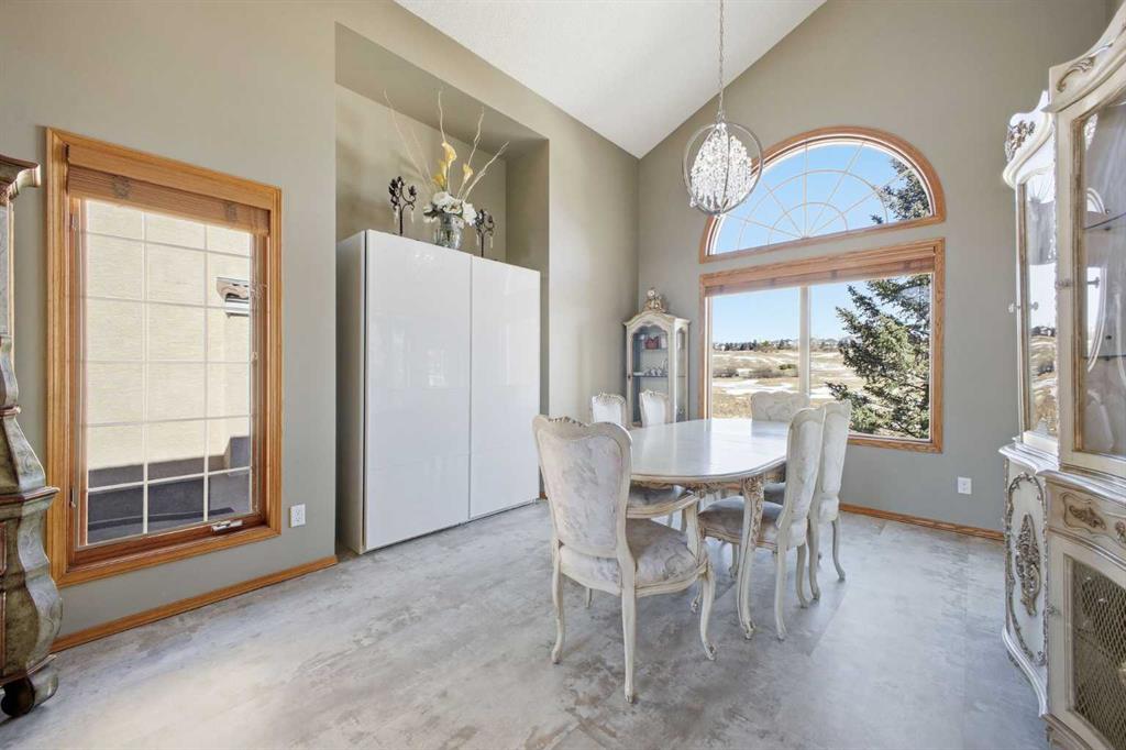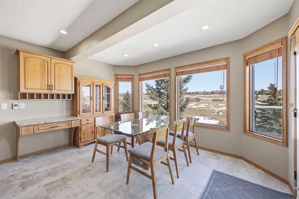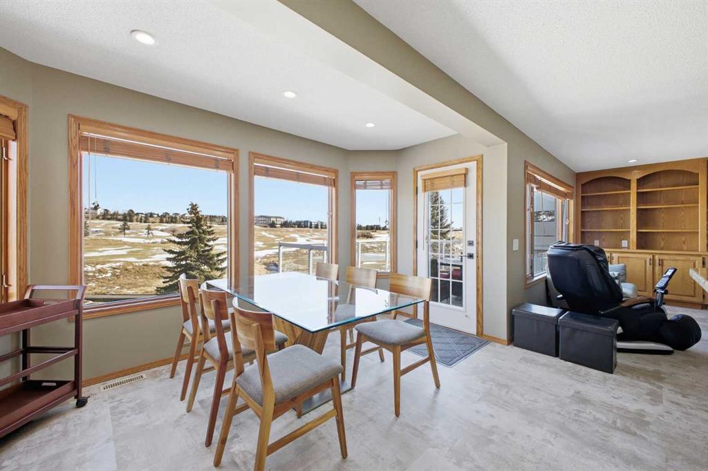 Perfectly positioned in the prestigious community of Country Hills Estates, this exceptional walkout home offers nearly 3,000 sq. ft. of refined living space with breathtaking golf course views. Backing directly onto the 6th tee box of the renowned Country Hills Golf Club, this property presents a rare opportunity to own one of the most desirable locations in the neighbourhood. The home makes an immediate impression with its triple car garage, distinctive rubber driveway, and welcoming walkway to the front entrance. Inside, a formal living and dining room with vaulted ceilings creates an elegant space for entertaining while capturing beautiful views of the golf course. Newer loose lay vinyl flooring throughout adds a fresh, modern feel. The main level is thoughtfully designed with a large, versatile den -ideal for a home office, library, or additional living space – alongside a convenient powder room, while the central living room is anchored by a classic wood-burning fireplace with custom built-in shelving. The open kitchen features stainless steel appliances, granite countertops, and a sunlit breakfast nook overlooking the fairway. Step onto the glass-railed balcony to enjoy uninterrupted golf course views—perfect for morning coffee or evening sunsets. A laundry room tucked away from the main living spaces adds everyday convenience. Upstairs, the home offers four generously sized bedrooms and three full bathrooms, a rare and ideal layout for families. The oversized primary retreat features a walk-in closet with built-in organizers and a beautifully renovated 5-piece ensuite with in-floor heating, dual vanities, a freestanding tub, and glass-tiled walk-in shower. All upstairs bathrooms have been tastefully renovated with quartz countertops, and one secondary bedroom includes its own private 3pc ensuite. The fully developed walkout basement adds exceptional versatility with two additional bedrooms, a spacious living area with a gas fireplace, and a full kitchen—perfect for guests, extended family, or multi-generational living. The lower level also offers abundant storage with multiple closets and dedicated storage areas. Walk out to an enclosed patio overlooking the golf course — another peaceful outdoor space to enjoy. Additional highlights include dual-zone furnaces and a newer metal roof, both reflecting the pride of ownership throughout the home. Beyond the property, the location is equally exceptional. Residents enjoy direct access to a scenic walking path looping around Country Hills Golf Club, just a five-minute walk from the front door. The home is also close to excellent schools including Simons Valley School and Sir John A. Macdonald School. With quick access to shopping, major routes, downtown, and the airport, this location has so much to offer. Backing onto one of Calgary’s premier golf courses in the sought-after community of Country Hills Estates, this is a rare opportunity to secure a truly unique property in a highly coveted setting.