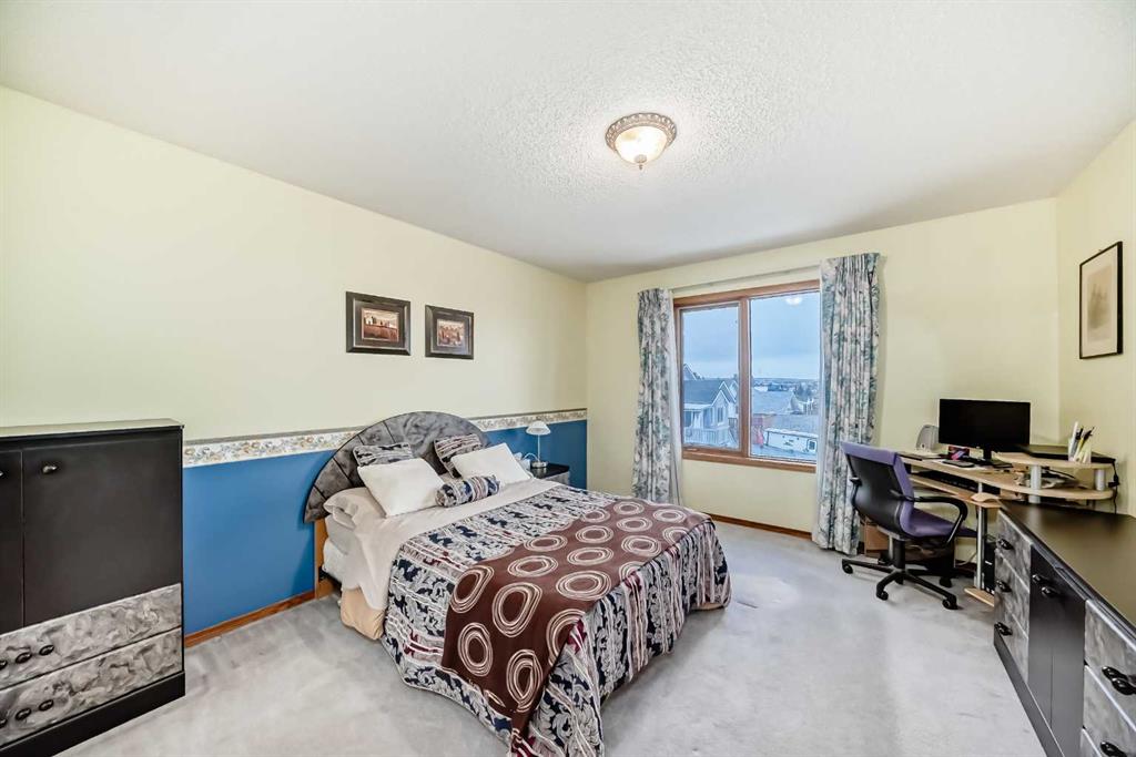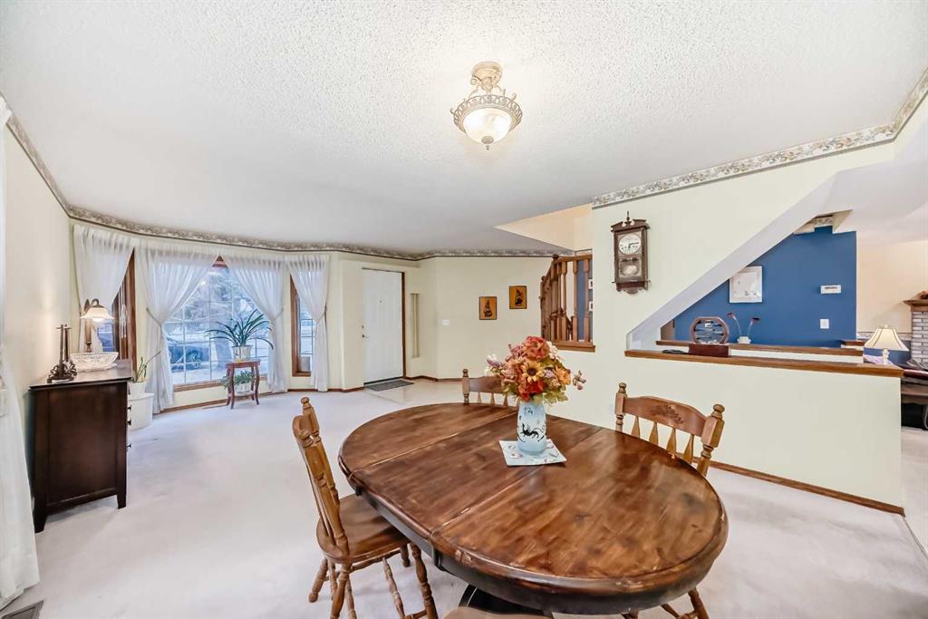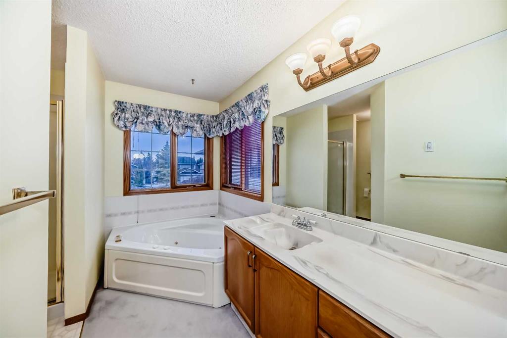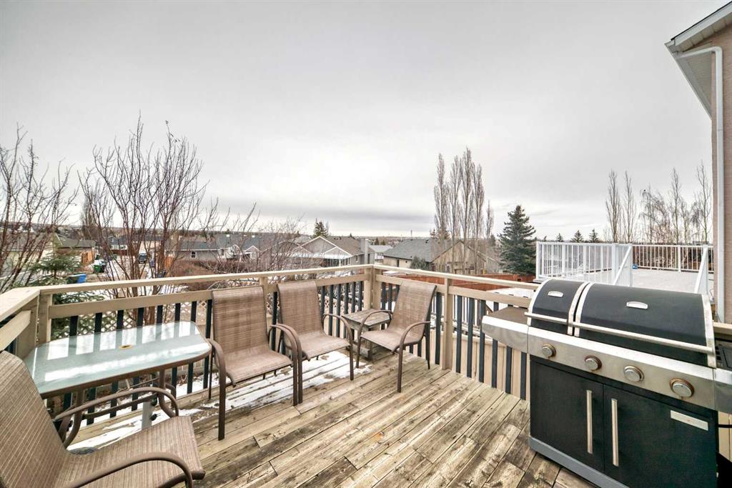 Welcome to this well-kept home in a desirable cul-de-sac location, offering comfort, space, and convenience. Spacious main level, this property features neutral finishes, an elegant open-railing staircase, and a functional kitchen complete with island, walk-in pantry, and a large bay nook opening onto the deck. The main floor also offers laundry and a warm family room with fireplace. Spacious bedrooms upstairs include a primary suite with walk-in closet and a relaxing ensuite with jetted tub and separate shower. The basement is 95% finished, ideal for added family living or entertaining. Important updates include the furnace and hot water tank replaced in recent years, plus new roof and gutters in October 2025. Ideally located with easy access to Stoney Trail, Deerfoot Trail, and shopping including T&T Supermarket.