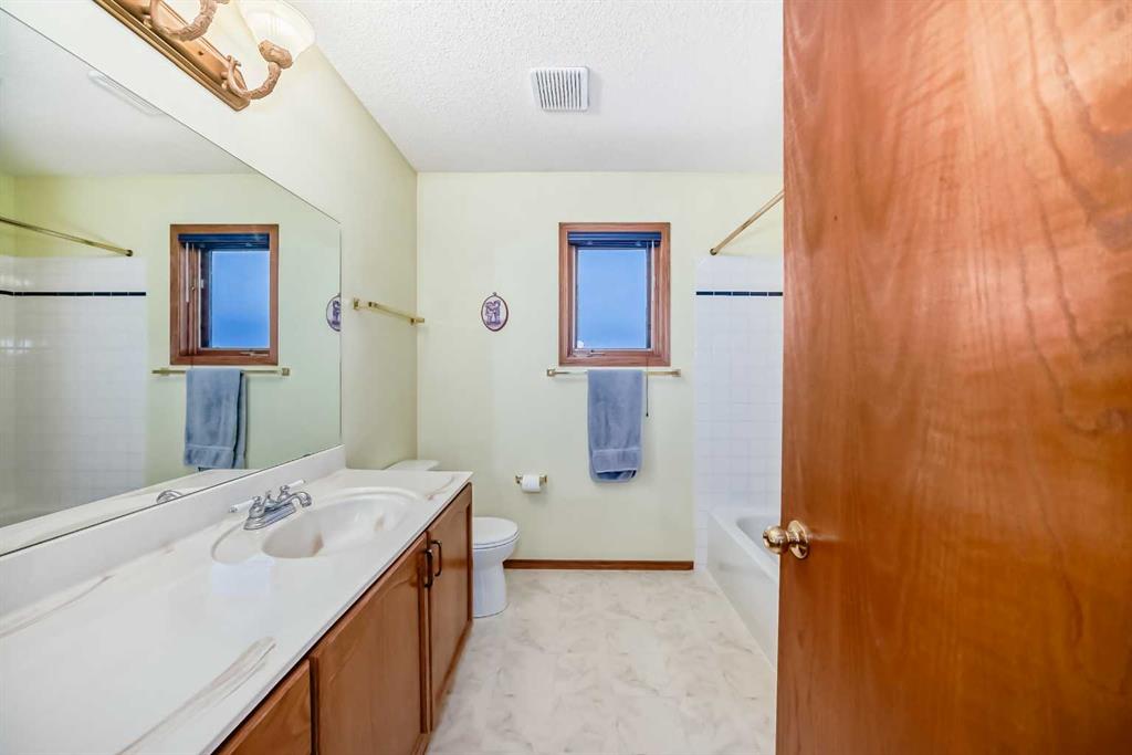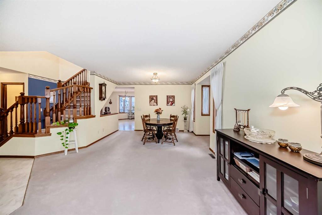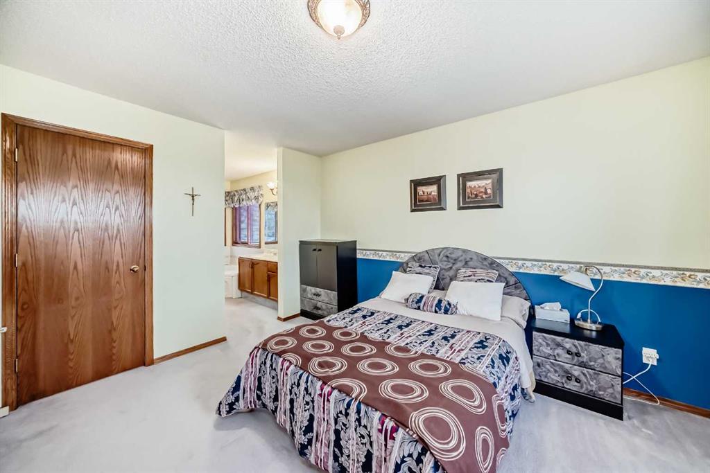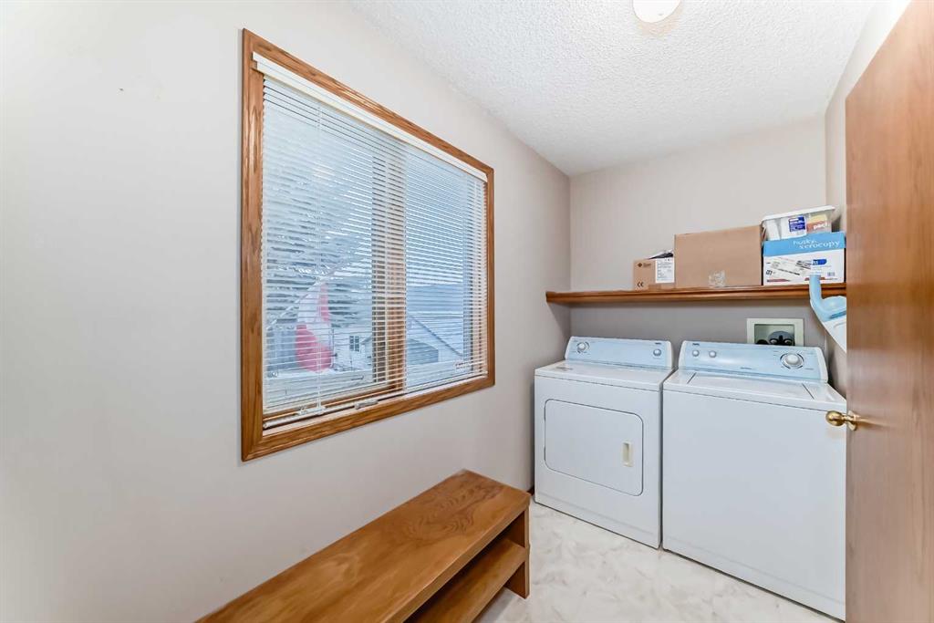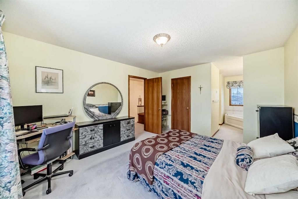 Welcome to this well-kept home in a desirable cul-de-sac location, offering comfort, space, and convenience. Spacious main level, this property features neutral finishes, an elegant open-railing staircase, and a functional kitchen complete with island, walk-in pantry, and a large bay nook opening onto the deck. The main floor also offers laundry and a warm family room with fireplace. Spacious bedrooms upstairs include a primary suite with walk-in closet and a relaxing ensuite with jetted tub and separate shower. The basement is 95% finished, ideal for added family living or entertaining. Important updates include the furnace and hot water tank replaced in recent years, plus new roof and gutters in October 2025. Ideally located with easy access to Stoney Trail, Deerfoot Trail, and shopping including T&T Supermarket.