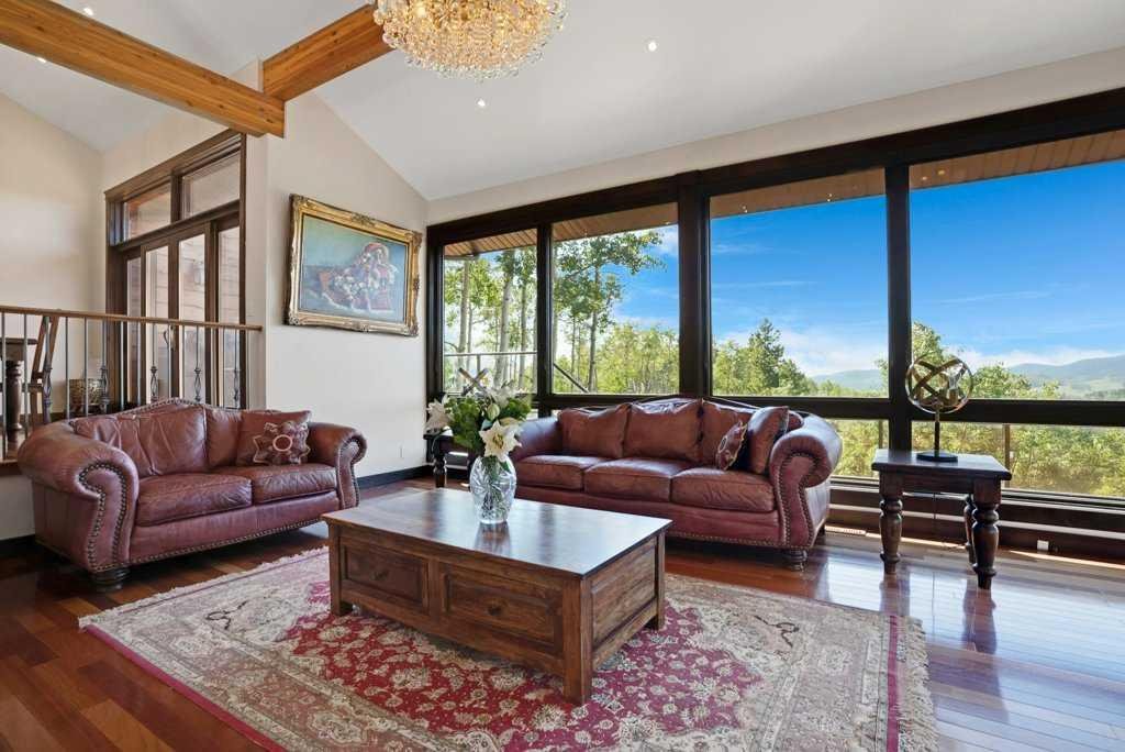 The Bragg Creek Trifecta: many properties have one of these three coveted things, but very few have it all! First, a beautiful home. Redesigned by award winning, internationally acclaimed designer, John Haddon, the 3968 sq. ft. of living space was taken down to the studs and rebuilt, inside and out, with the finest materials and craftsmanship. Second, incredible views of the mountains and forest. Given the seclusion and privacy, not a single curtain on any of the 55 windows impedes the breathtaking views afforded from every room. The third and most rare attribute of all, the thing that makes this “the hat trick”, is direct access to Kananaskis Country! That’s right, there is a private gate that connects to one of the most famous, beautiful, backcountry areas in Alberta, where you can hike or bike or ride for days. This home, sitting on 23 acres, is part of a small exclusive development of properties which span a ridge and directly border K-Country – the biggest backyard of all! Entering the home, the first thing you notice is the airy interior space, with cathedral ceilings and huge windows. The slate foyer gives way to Brazilian cherry hardwood floors, flowing throughout the balance of the home. Resisting the urge to immediately rush to the windows and deck system, to the left is the dining room and kitchen with quartz countertops and high-end appliances. Further on are two high-ceiling bedrooms, each with their own access to the wrap-around deck and connected by a large Jack and Jill 5-piece en suite. The upstairs is entirely devoted to the primary suite, which is unparalleled, with the huge windows and private deck all giving a new perspective to the vistas beyond. The 6-piece bathroom and walk-in closet complete this lofty sanctuary. The walk out lower level features a bar, exercise room, office area, expansive rec room with gas fireplace, 3-piece bath, and French doors to the walk-out patio and huge deck beyond. The property is completed by an insulated and drywalled triple car garage. You’re intrigued, I can tell, and further investigation is needed. Explore using our streaming video and 3-D tour; and then take the next step and make the Trifecta your own.