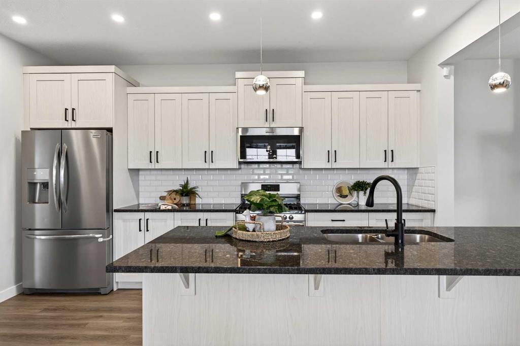 Outside, the sunny south-facing rear yard is a low-maintenance oasis with artificial turf, a deck, and a firepit—all enclosed by a beautiful fence. Situated on a prominent corner lot across from the quiet side of the Northcott Prairie School (K-8) yard, you are just steps from tennis courts, basketball courts, an off-leash dog park, and easy access to Highway 2. With a double garage and an abundance of street parking, this is the complete package. Don’t miss your chance to own one of South Airdrie’s most unique homes!
