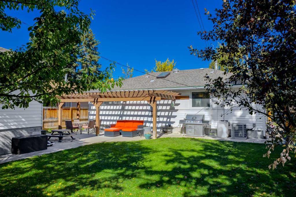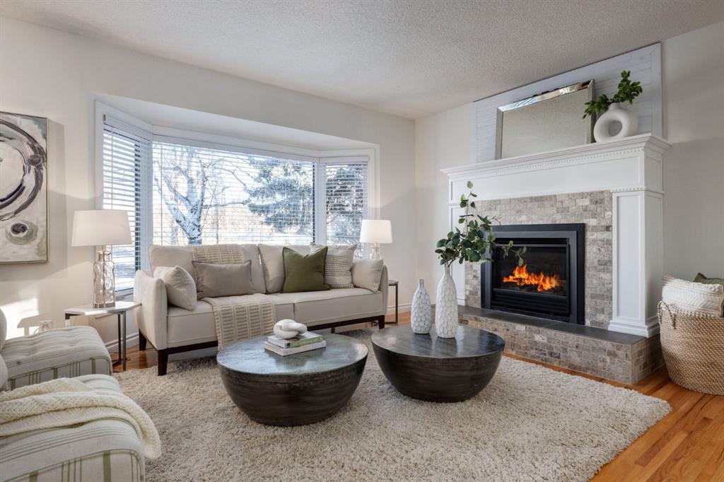Ideally situated in the quiet, inner-city community of Glendale, this well cared for gem showcases 5 bedrooms, 2 bathrooms, countless upgrades, a single garage, large backyard with mature trees, and a phenomenal location across from a school, steps from the community centre, parks, greenspaces, tobogganing, and outdoor hockey rink. This RC-G zoned, 50×100′ lot features a home with charming curb appeal, a separate back entryway (ideal for a future suite), a large font yard and matures trees and front planters. As you enter this beautiful home, you are greeted by solid oak, site-finished hardwood flooring and an open concept layout including a spacious kitchen, bright living room, and a dining room with windows overlooking the beautiful and spacious south backyard. The kitchen boasts a center island with bar seating, tons of counter space, and white solid wood shaker style cabinets with ample storage. The adjacent living room is flooded in natural light through floor to ceiling bay windows and boasts an elegant gas fireplace with marble style surround and a classic white mantle – perfect for cozying up to watch the snow fall outside and to gather around for holidays. Enjoy coffee at your dining room table while watching your kids or pets play in the spacious south-facing backyard. Through double French doors you’ll find the main floor office with beautiful built-in bookcases and shelving, making it the perfect work from home space, or a third bedroom on the main level. The main floor is completed by a full 4-piece bathroom with recent updates. This home boasts a separate back entryway providing access to the lower, giving it the potential to add a legal suite in the future. The lower-level features brand new carpeting, two spacious bedrooms, one with a giant walk-in closet, a large media space, room to play, a large storage area, laundry machines, and a fully renovated 3-piece bathroom with new tile, vanity, and a spacious stand-up shower. Park in the single detached garage and enjoy the summertime in the sprawling south facing backyard with room to play. Other upgrades include central A/C (2021), triple pane windows upstairs (2017), an irrigation system (front and back), a new hot water tank (2024), new sump pump (2025), furnace (2014). Enjoy unobstructed views no neighbors out your windows and the school playground in the distance from your living room windows. This superb location is one block from the Glendale community center which features picturesque scenes, an outdoor rink, tennis courts, a playground, and flows into Turtle Hill Park, which is perfect for enjoying an evening walk in nature. This home is also a quick walk to multiple schooling options including Spanish bilingual, French Immersion, Montessori, Catholic, and public schools, and is a short commute downtown. This wonderful home is extensively upgraded, provides a peaceful inner-city lifestyle in a lower density family friendly community, and affords a great commute to amenities and downtown.