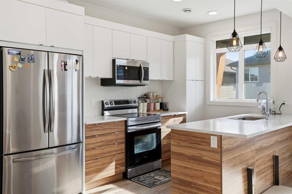 Gorgeous 3-Storey Townhome | Located in the Heart of Savanna NE | 3 Bedrooms | 2.5 Bathrooms | Sleek & Modern Design | Two Toned Kitchen | Honeycomb Backsplash | Stainless Steel Appliances | Kitchen Breakfast Bar | Open Floor Plan | High Ceilings | Large Windows | Incredible Natural Light | Recessed Lighting | 2 Balconies | Attached Garage. Gorgeous 3-storey townhome located in the heart of Savanna NE, offering 3 bedrooms, 2.5 bathrooms, and a sleek, modern design throughout. The front entry opens to stairs leading up to the bright and spacious main (2nd) level, while entry from the attached garage conveniently bypasses the lower level and also brings you directly to the main living space.