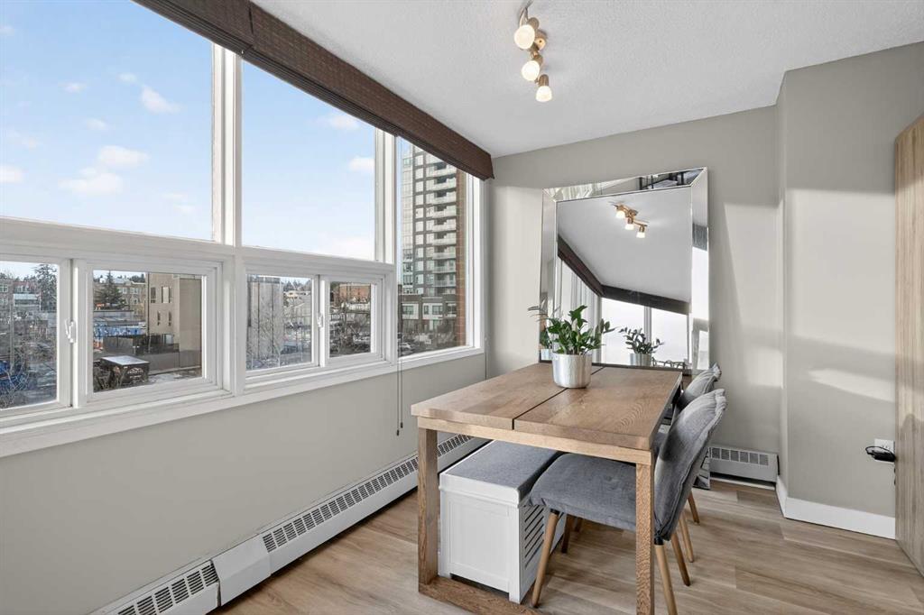 **Welcome to this EXTENSIVELY RENOVATED 2 Bedroom + Den condo, offering a refined blend of comfort, style, and urban convenience. Nestled on a quiet, tree-lined avenue just two blocks from vibrant 17TH AVENUE this SE corner unit enjoys additional windows and an abundance of natural light throughout the day. The interior showcases NEWER wide-plank flooring, in-suite laundry, and the added convenience of an assigned UNDERGROUND PARKING stall. The kitchen has been FULLY RENOVATED within the past 2 years, featuring updated cabinetry, generous counter space with an extended breakfast bar, and ALL-NEW stainless steel appliances, including a NEW washer/dryer. A rare kitchen window enhances both light and functionality, an uncommon luxury in condo living. The kitchen flows seamlessly into the spacious living room, making it ideal for entertaining. Adjacent to the dining area, the open-concept DEN provides an excellent work-from-home studio or creative art space, offering flexibility to suit your lifestyle. Both bedrooms are well-proportioned, and the FULL BATHROOM HAS BEEN UPDATED with a new vanity and toilet, adding to the home’s move-in-ready appeal. Residents also enjoy access to a ROOFTOP PATIO with sweeping views of Calgary’s ever-changing skyline, perfect for hosting gatherings, grilling, or simply unwinding. This home offers the unique advantage of being steps from a vibrant social scene while still providing a peaceful, private retreat. Pet Policy: Maximum of two domestic cats or dogs, each not exceeding 15 kg when fully grown.