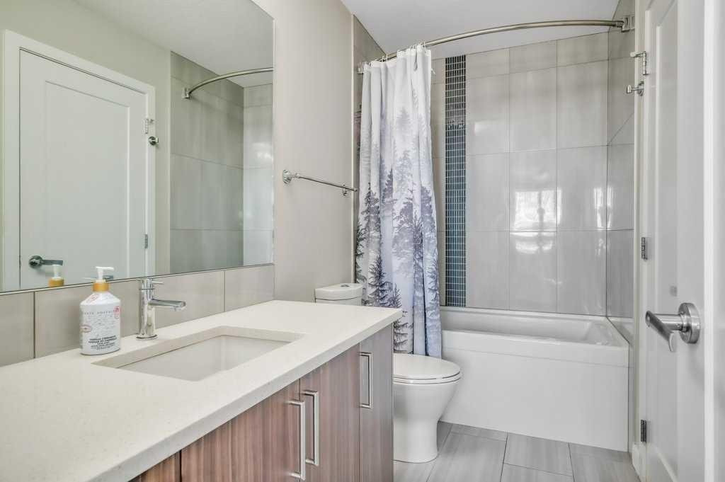 Step inside to discover an open floor plan accentuated by high-end laminate flooring that adds a touch of elegance to the living areas. The kitchen is a culinary dream featuring rich, dark cabinetry paired with light-coloured countertops and a sizable island that seamlessly incorporates a built-in quartz dining bar – perfect for serving up morning pancakes or evening cocktails.