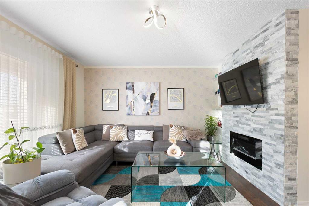 Welcome to 4023 Windsong Boulevard SW, a well-kept and thoughtfully designed 3-bedroom home in one of Airdrie’s most sought-after communities. From the moment you step inside, you’ll notice how bright and inviting the main floor feels, with large windows and an open layout that makes both everyday living and entertaining easy. The living room features a modern electric fireplace and a stylish feature wall that adds warmth and personality.
