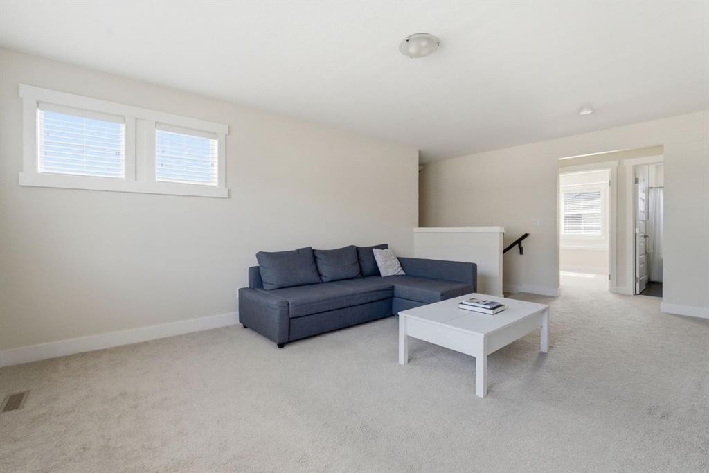 Welcome to this beautifully maintained two-storey townhome in the award-winning community of Coopers Crossing, where style, space, and convenience come together in one exceptional property. Offering over 1,700 sq ft above grade plus an additional 1,000 sq ft in the unfinished basement, this home provides an excellent balance of comfortable living today with room to grow tomorrow. Ideally located close to schools, parks, pathways, shopping, and everyday amenities, this is a property that truly delivers on lifestyle. Step inside to a bright and inviting main floor featuring an open-concept design perfect for both everyday living and entertaining. The spacious kitchen is the heart of the home, complete with granite countertops, stainless steel appliances, abundant cabinetry, and a large sit-up breakfast bar island that offers plenty of prep space and casual seating. The adjoining dining area flows seamlessly into the welcoming living room, where a cozy fireplace creates the perfect setting for relaxing evenings at home. The main floor primary suite is a standout feature, offering a generous retreat complete with a walk-in closet and a luxurious 5-piece ensuite with dual sinks and a soaker tub. This sought-after main floor bedroom layout adds comfort and convenience for a variety of lifestyles. Upstairs, you’ll find a spacious and versatile bonus room ideal for family movie nights, a second living area, playroom, or home office. This level also includes a second good sized bedroom, an additional full bathroom, and a family room area that offers excellent flexibility for guests, children, or multi-purpose living. The unfinished basement adds approximately 1,000 sq ft of future potential, ready for your personal vision whether you choose to create more living space, a gym, hobby area, or simply enjoy the abundance of storage. Step outside to the large deck, perfect for summer BBQs or quiet evenings outdoors. Completing the home is the rare convenience of a double attached garage, providing secure parking and extra storage year-round. Lovingly cared for and thoughtfully designed, this Coopers Crossing gem offers the open-concept main floor, spacious kitchen, main floor primary retreat, upper bonus space, attached garage, and incredible future basement potential all in one of Airdrie’s most sought-after communities.