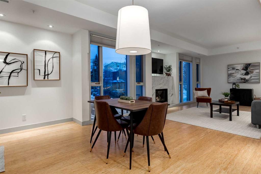 Penthouse living awaits in this stunning, 3 bedroom, 3 bath home with over 1400sqft of thoughtfully designed living space! The open concept layout has 9 ft ceilings, floor to ceiling windows to bring in plenty of natural light and high end finishings throughout. The chef inspired kitchen features lacquered cabinetry, stainless steel appliances, quartz counters, and a large island with breakfast bar overlooking the dining and living rooms – ideal for entertaining. Step out from the dining room unto the balcony to enjoy the downtown, while your spacious living room is anchored by a striking marble-tiled gas fireplace. The primary bedroom has a 5 piece ensuite and an oversized walk-in closet with built-in organizers. 2 additional bedrooms are well proportioned – one with a walk-in closet – are conveniently located near 2 full bathrooms, perfect for sharing or guests. Insuite laundry and a titled stall in the underground parkade complete this home. Located within an easy walk to Marda Loop and it’s many shops, restaurants and amenities, plus with a quick commute to downtown, this home is not to be missed!