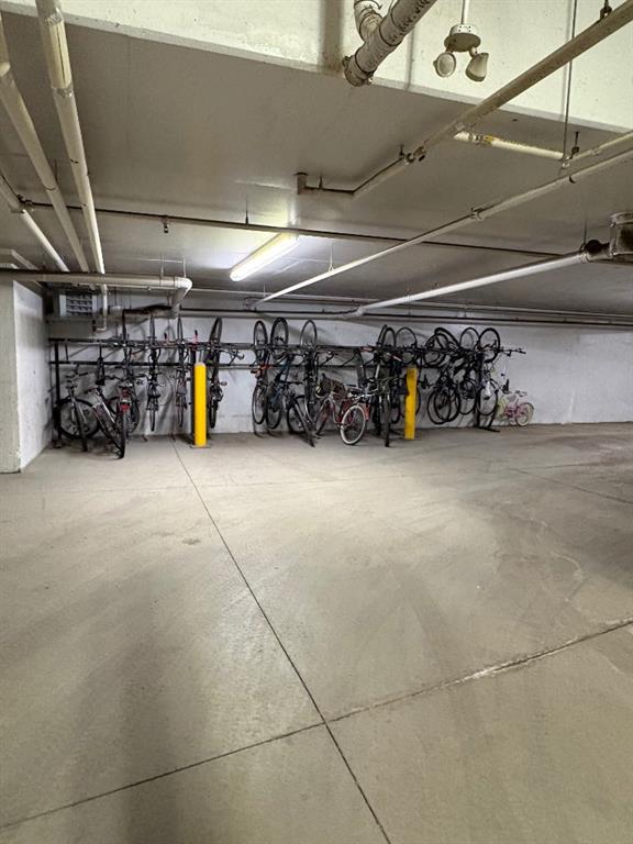Excellent move in ready top floor, West facing, one bedroom plus spacious den (room for a guest bed), open floor plan with kitchen, granite countertop, pantry, updated cabinetry, stainless steel appliances, spacious primary bedroom (double closet with custom cabinetry, blackout blind), full bath soaker tub with cheater door access, spacious living room with gas fireplace. Extra length west facing deck (gas line for bbq). Recently painted. Extras include: ceiling fan, vented hood fan, infloor heating, Hunter Douglas Blinds, insuite laundry One underground parking stall and extra storage locker in the parkade area. Excellent amenities location: near Bridgeland restaurants, coffee shop, parks, Bow River pathway system, Bridgeland C-Train station