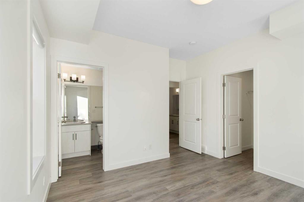 2 Bedroom 2 Bath END unit townhouse with a garage that offers the perfect blend of style and function, with most of the layout conveniently situated on a single level. Step inside and up 1 flight of stairs to the main floor and you will discover an open-concept living area with and a fully equipped kitchen boasting quartz countertops, soft-close drawers, and stylish two-tone cabinets highlighted by pendant lighting. An adjacent, flexible space is perfect for a spacious dining area or a home office. This home has two large bedrooms and two full bathrooms. The primary bedroom features a massive walk-in closet and a 4-piece ensuite. A spacious laundry room adds to the convenience. This unique floor plan is designed to feel like a modern apartment but with the added benefits of a main floor storage/flex area and direct access to an oversized, extended single-car garage.This home is perfectly situated to offer the best of both convenience and community. It’s located right next to a future school site, with transit options directly at your doorstep for effortless commuting. Enjoy a short two-minute walk to Bow Valley High School, and a quick five-minute trip to the Spray Lakes Sports Centre for all your recreational needs. For bigger city amenities, you’re only 20 minutes from South Calgary, and the mountains are within easy reach, with Canmore just a 40-minute drive away.