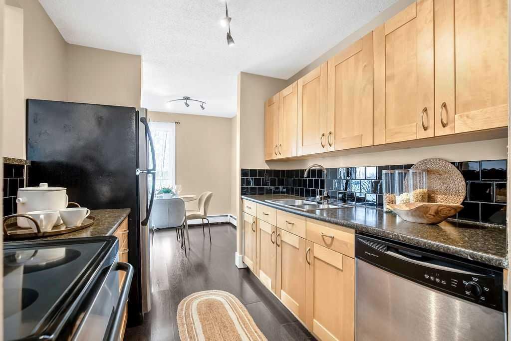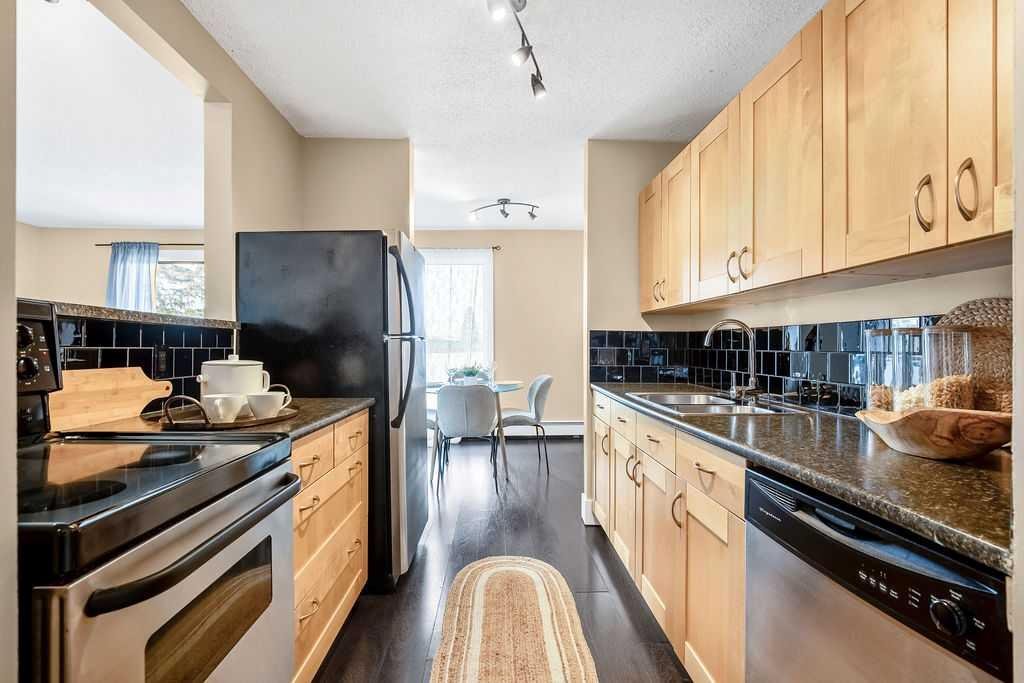 Located on the fourth floor, this unit enjoys added privacy and quiet, with no neighbours above you. The open-concept kitchen, dining, and living area creates an inviting space for both everyday living and entertaining. The kitchen features sleek stainless steel appliances, a stylish black backsplash, laminate countertops, and a full pantry for generous storage. The open layout flows seamlessly into the dining area and spacious living room, creating the perfect setting for hosting friends or cozy nights in.