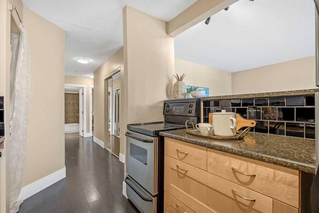 Enjoy the convenience of in-suite laundry and a designated covered parking stall located just steps from the back entrance.