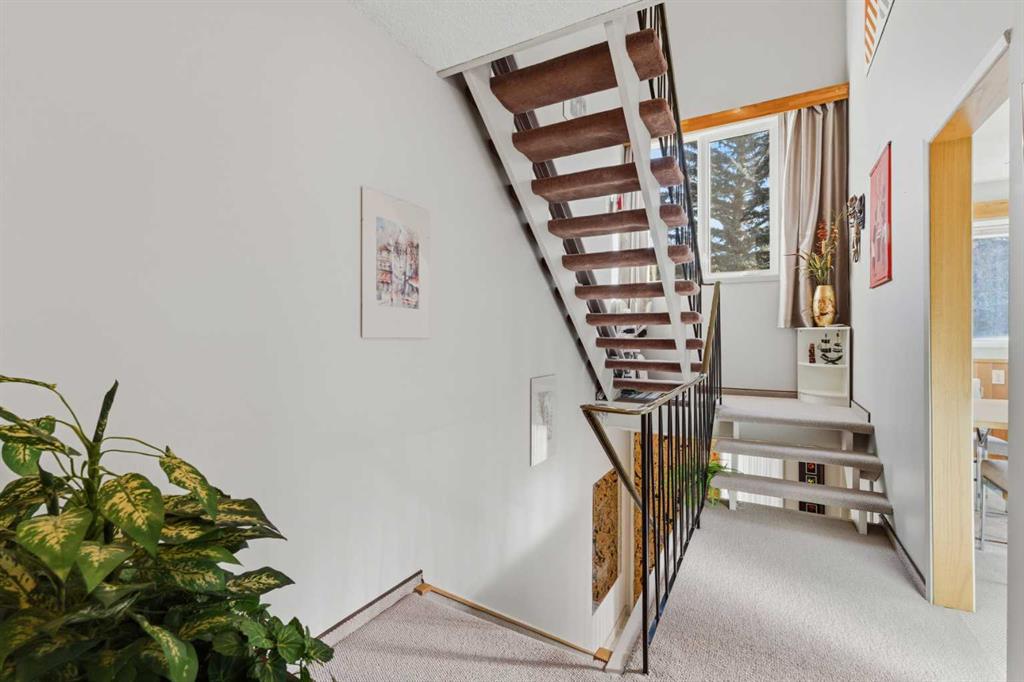 ** Open House Sunday January 18 from 1-4Pm ** Seeking the perfect balance between urban amenities and natural beauty, this Lakeview community Townhouse in Phase One is awaiting your special touch! Discover comfort, style, and convenience in this beautifully appointed 2-bedroom, 2-bathroom townhome located in the highly desirable community of Lakeview. Value priced to sell, this residence offers exceptional value and a welcoming atmosphere for families, professionals, and active individuals. The main floor Kitchen offers plenty of natural light, storage and functionality. The large, open-concept living room is flooded with south facing natural light across a wall of windows, creating a warm and inviting space for relaxation or entertaining. Sliding doors welcome you to the sunny south balcony. The complex is currently going through a facelift with new balconies underway. Bathrooms include a 2-piece powder room and 4-piece bath just off the 2 oversized upper bedrooms. In addition, you get another office in the basement and heated attached garage. Your Perfect Home Awaits – Steps from Schools, Parks & Glenmore Reservoir!