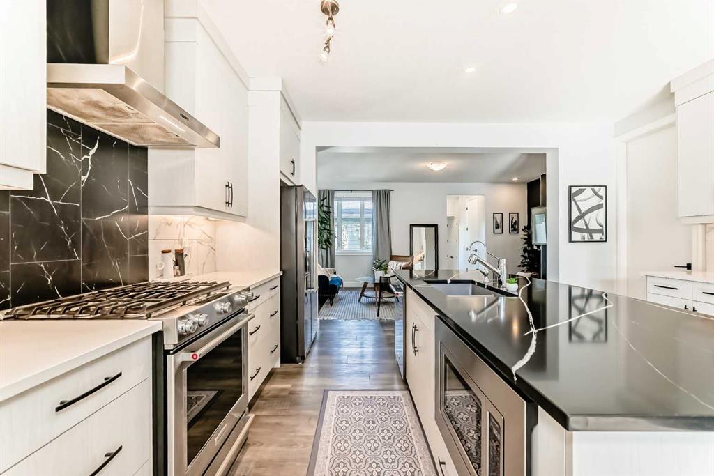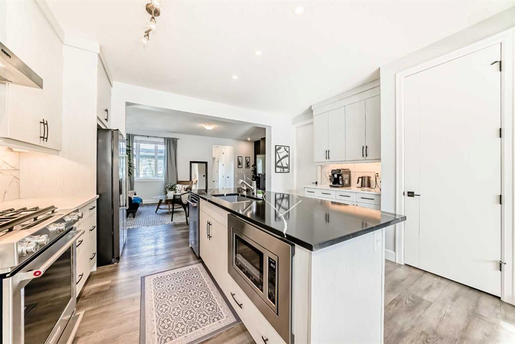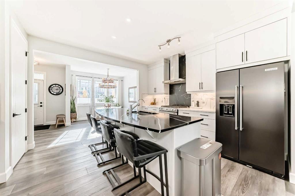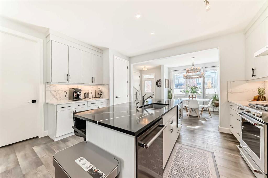 Step inside to a bright, OPEN-CONCEPT main floor featuring 8-FOOT DOORS, upgraded 5.5″ baseboards, and stylish trim throughout. The chef-inspired kitchen includes FLOOR-TO-CEILING CABINETRY, premium KitchenAid STAINLESS STEEL APPLIANCES, a large island, with QUARTZ COUNTERTOPS, Silgranit sink, and a built-in COFFEE BAR with PANTRY—ideal for everyday living and entertaining.