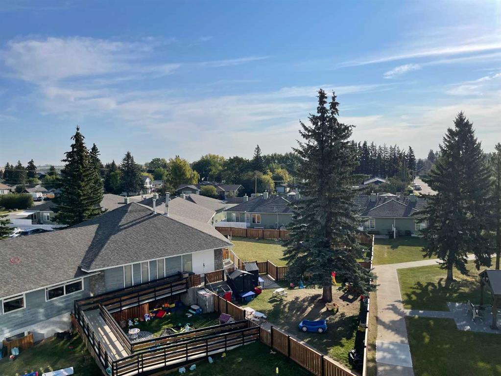 This very well maintained top floor condo unit may be just the ticket for you to get rid of the snow shovels and lawn mower! Campus Green is a great community within the great community of Didsbury. The open plan allows you to have plenty of options for setting up your main living areas. Step inside this unit and into the bright white kitchen with plenty of cabinets and a newer counter-top. The living room and dining area are conveniently located off of the kitchen. Walk through the living room that features a wall style air conditioner and sliding patio doors to the east facing covered balcony. From your balcony you have terrific views of the courtyard/greenspace behind and of the east side of Didsbury and even the countryside beyond. The balcony features a handy storage closet for those items you don’t use everyday. The primary bedroom is spacious and features 2 closets and a 2 piece ensuite. The main bathroom has a nice shower with seat and a large vanity. The second bedroom boasts french doors and a murphy bed wall unit that allows it to be an office and a guest room. The laundry room has additional storage space. This building has secure heated parking, a gathering rec room space and a social area with tables and chairs. Truly a nice place to call home.