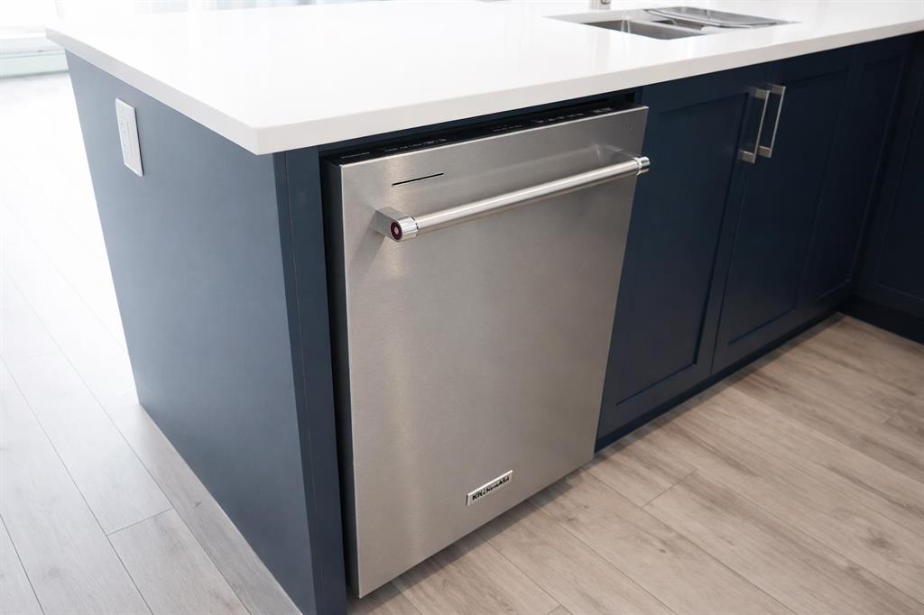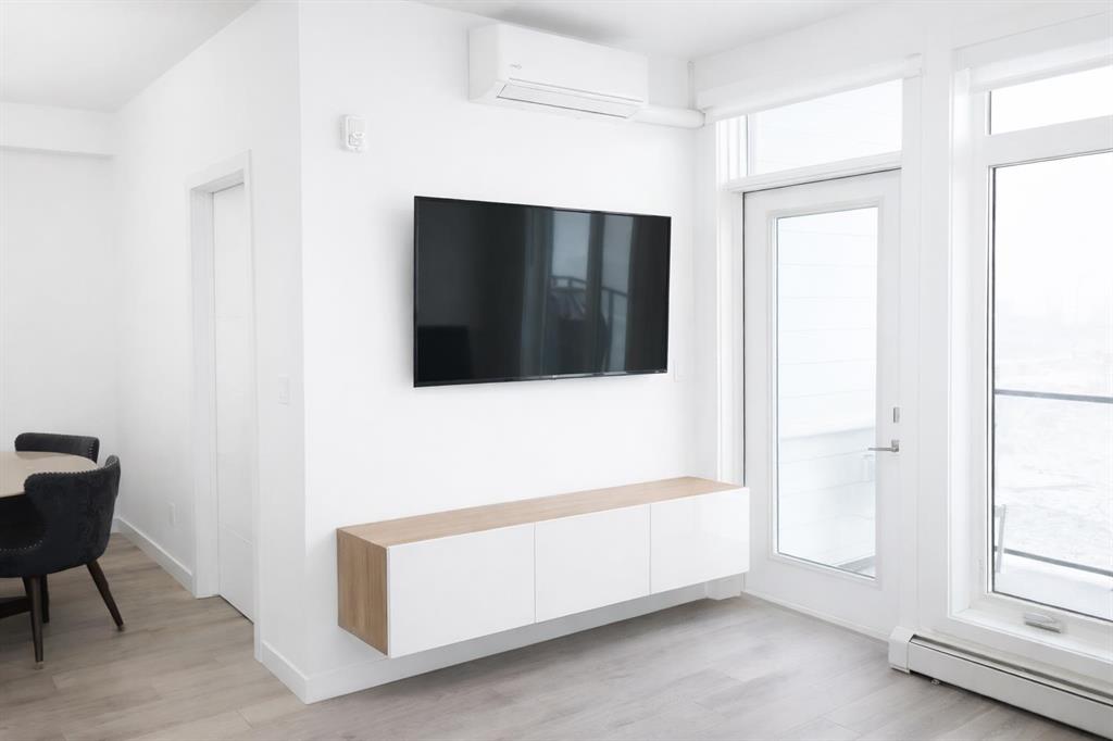 Welcome to the Springbank Hill community, known for its excellent schools and family-friendly environment. This beautiful area is bordered by a natural environmental reserve park with abundant walking trails and bike paths that connect throughout this vibrant and growing community. This new build condominium, Orion Condominium, is located at 85 Street and 19 Avenue SW. This fully upgraded open-concept unit is designed to highlight its large double balcony and double-pane windows. The home features a Lennox mini-split heating and cooling system, an efficient dual heating and air conditioning system professionally installed with permits. Luxury vinyl plank flooring with soundproof underlay runs throughout the living room, dining room, kitchen, bathroom, and primary bedroom. The European-inspired kitchen is finished with premium kitchen cabinetry, shaker-style cabinets throughout all bathrooms, soft-close drawers, marble quartz countertops, KitchenAid appliances (refrigerator, gas stove, microwave, dishwasher), stacked front-load washer and dryer, and a natural gas BBQ line installed on the balcony. Includes one titled parking stall and an oversized storage locker (75 sq. ft.) located beside the parking stall. Walking distance to Aspen Landing Shopping Centre with grocery stores, restaurants, cafes, clinics, and amenities. Quick access to Stoney Trail and Bow Trail, and close to 69 Street C-Train Station for easy downtown access, as well as Westside Recreation Centre.