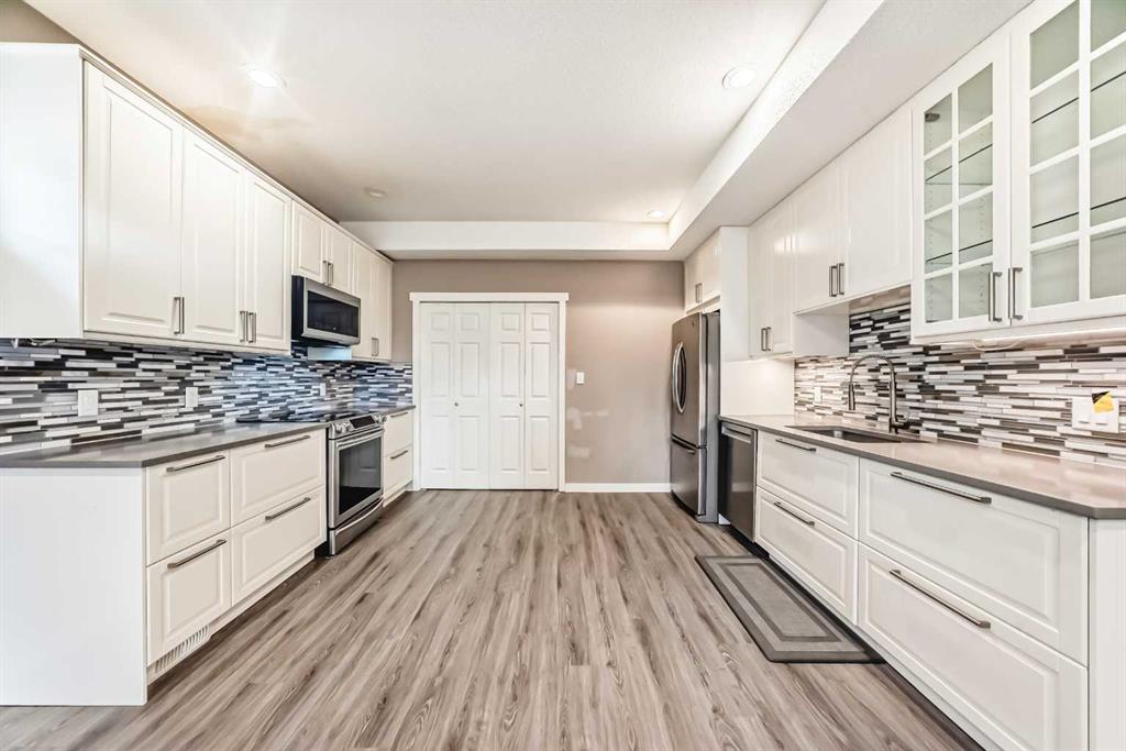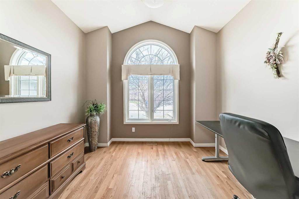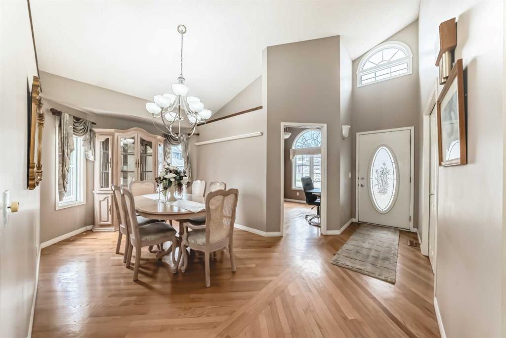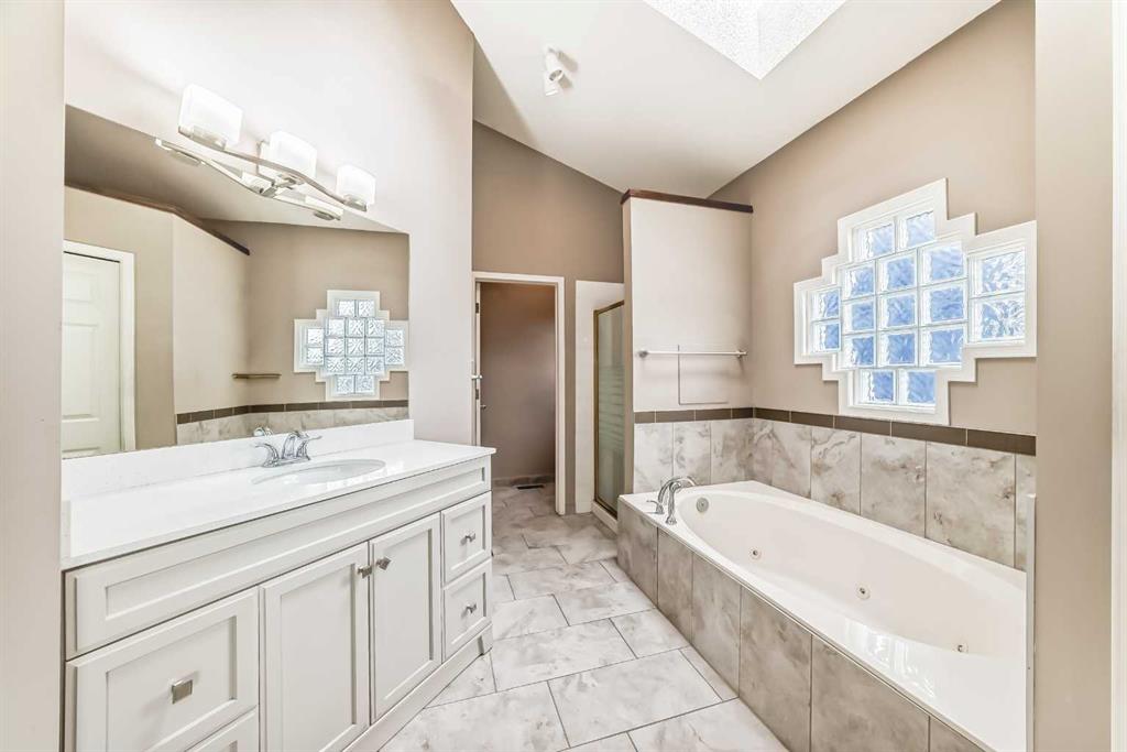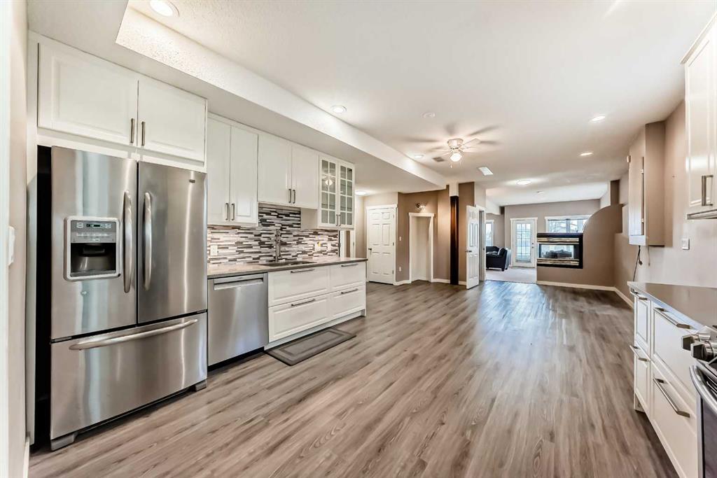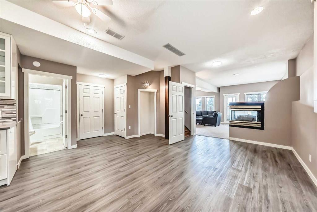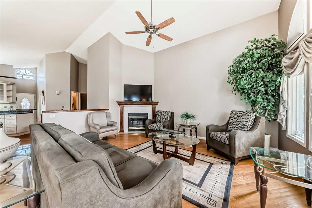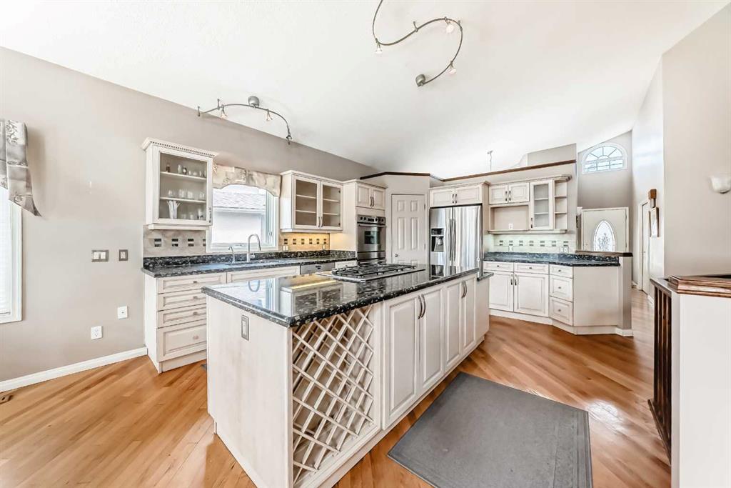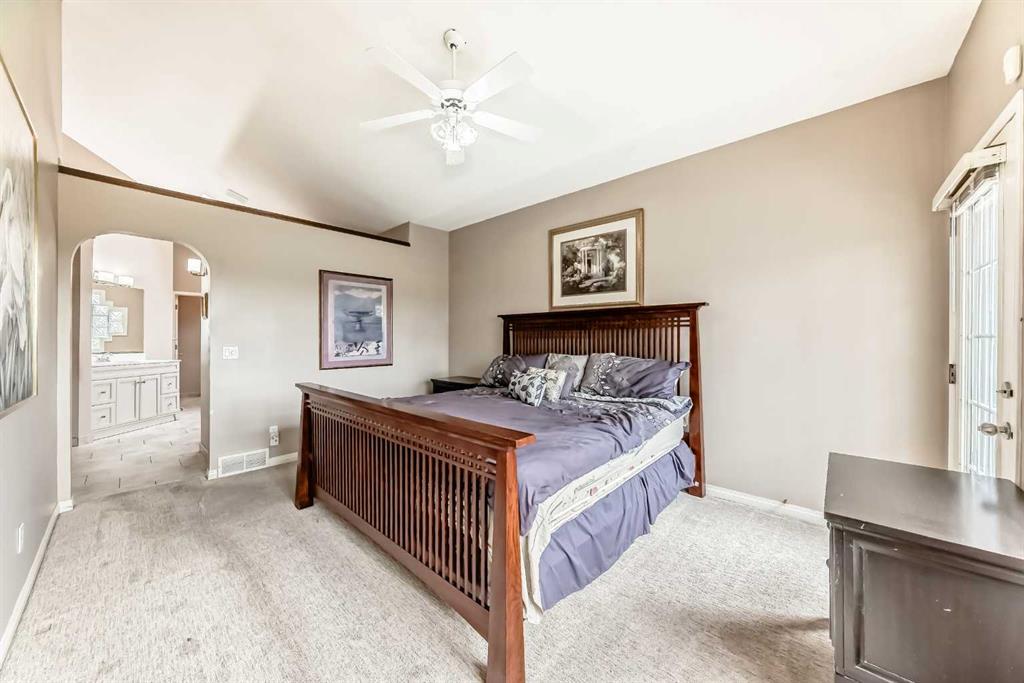 The generous primary bedroom also enjoys direct balcony access and is complemented by a large 4- piece ensuite with heated ceramic tile floors, a jetted soaker tub, and a separate shower. A formal dining room, den/study, 2-piece bath, and a laundry/mudroom complete the main level, with convenient access to the fully finished, oversized garage. Downstairs, the bright walk-out level features large windows and impressive views of its own. You’ll find a spacious family room with a three-sided fireplace, plus a den/bedroom, and access to a large patio. An unbelievably large kitchen/dining area offers plenty of cupboards, quartz countertops, stainless steel appliances, and a large pantry. This level also includes a 4-piece bath, a mechanical room with a second laundry area, and a third bedroom with a 3-piece ensuite. on an oversized lot in a quiet cul-de-sac, this home offers an outstanding location and incredible potential. With your ideas and a little polishing, this property could be the crown jewel of the cul-de-sac.