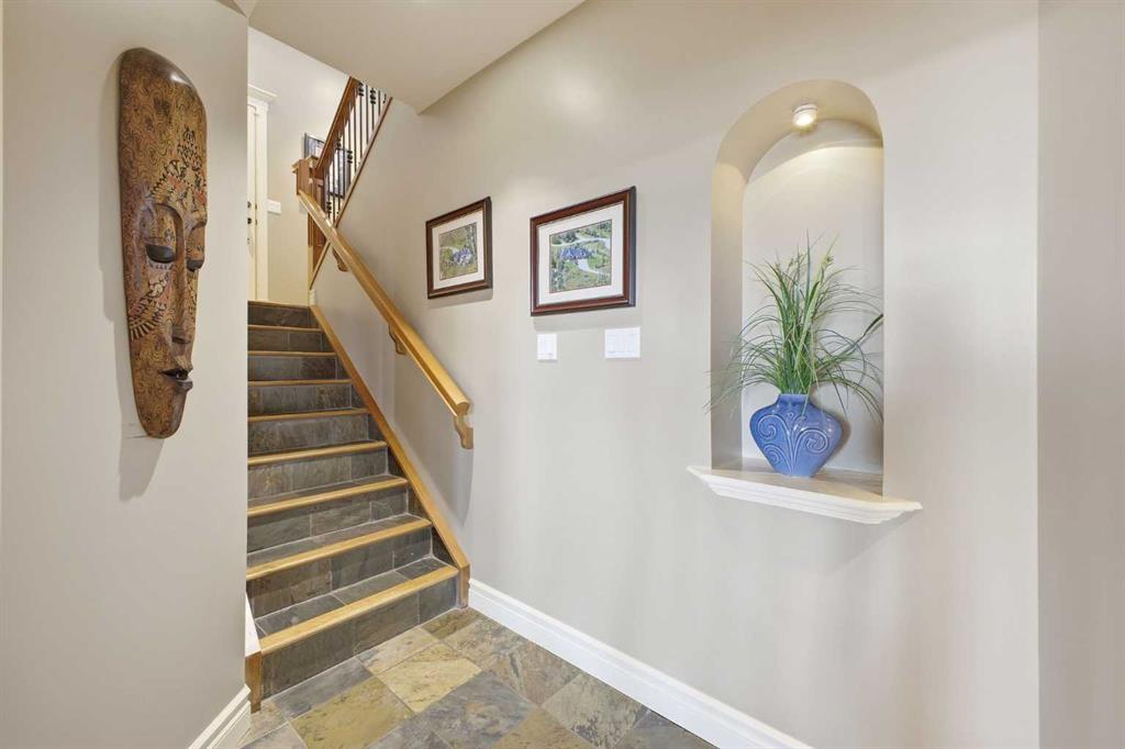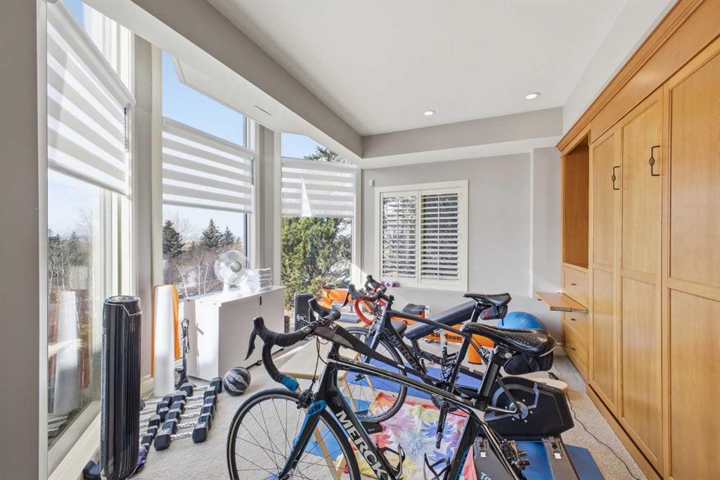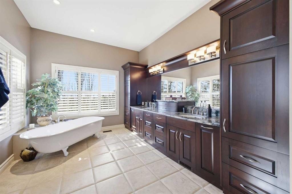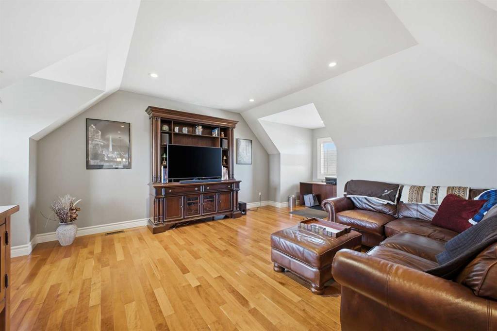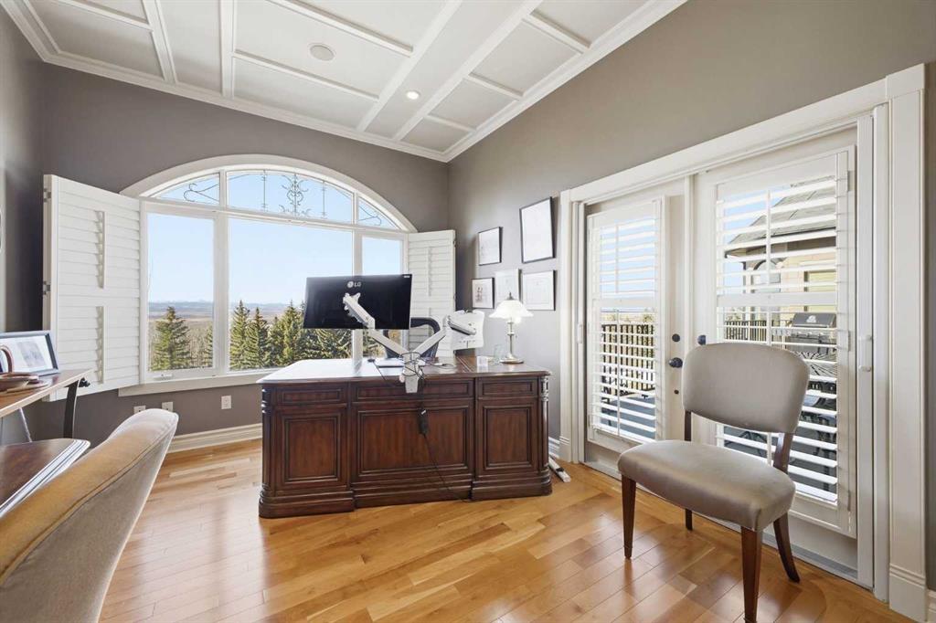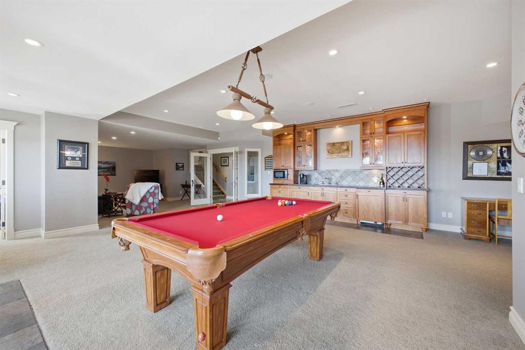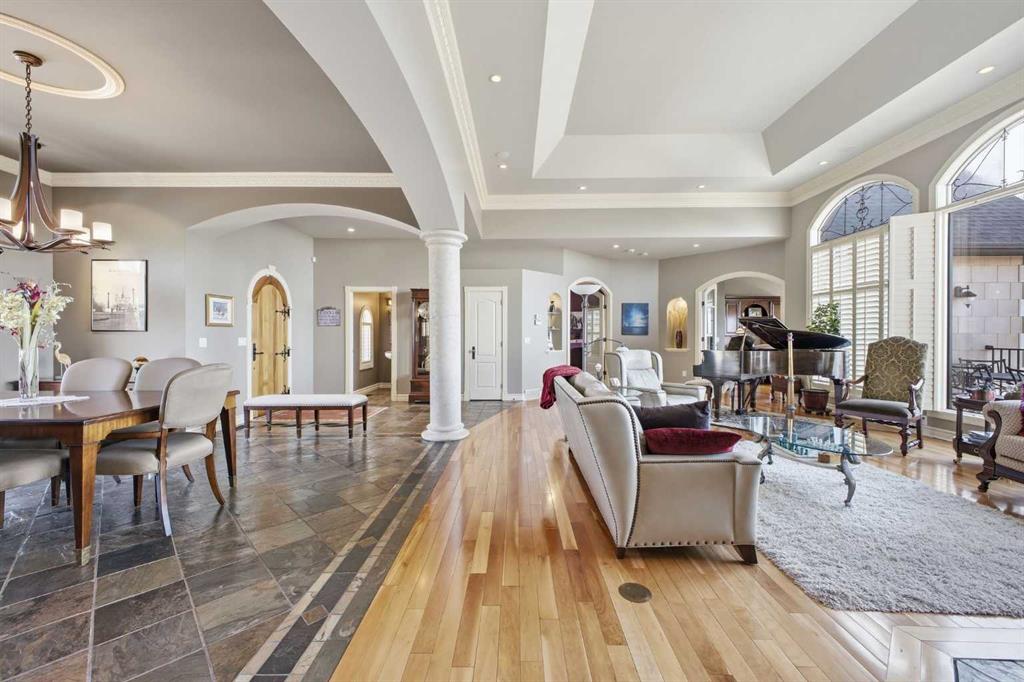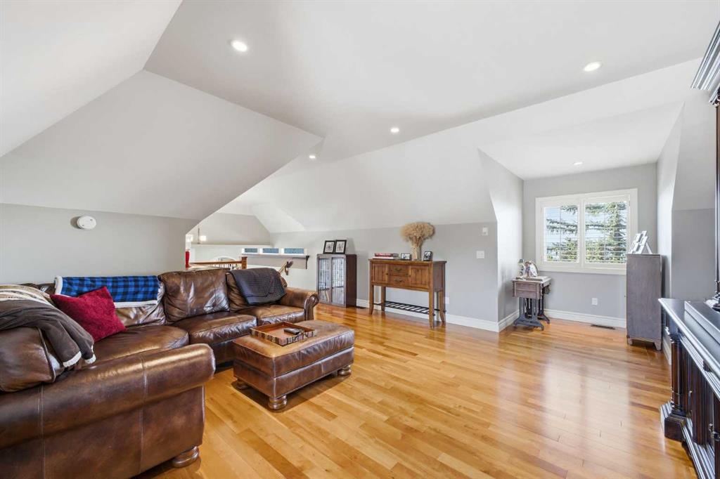 An expansive 2 acre estate in prestigious Pinnacle Ridge, perfectly positioned to capture sweeping, unobstructed views of the Rocky Mountains. This elegant 4 bedroom residence offers nearly 5,200 sq ft of refined living space, including a fully developed walk out basement. The main level showcases hardwood and slate flooring, 9’ ceilings, crown moulding, and an abundance of windows that drench the home in natural light. A formal dining room provides generous space for hosting, while the living room features a tray ceiling and a double sided fireplace for added warmth and ambiance. The tastefully updated chef’s kitchen is appointed with granite countertops, a large island with eating bar, extensive cabinetry, top tier appliances, and a bright breakfast nook framed by serene mountain views. Also on the main level, the private primary retreat includes a walk in closet and a luxurious 5 piece ensuite with dual sinks, a freestanding soaker tub, and a glass enclosed shower. A dedicated office/den is tucked just off the living room—ideal for a quiet workspace—and a 2 piece powder room completes the level. The upper floor offers a spacious bonus room, perfect for a media lounge, studio, or additional office. The fully developed walk out basement extends the living space with a large recreation room, wet bar, and an insulated wine cellar for the enthusiast. This level also includes a flex room with Murphy bed (currently used as a home gym), two additional bedrooms, den, two full bathrooms, and a well appointed laundry room with sink, storage, and hanging racks. Additional features include central air conditioning, a new boiler system, built in speakers throughout, and leaf filters on all eavestroughs with a lifetime warranty. Outdoor living is exceptional with a large upper deck and tiered patio overlooking impeccably landscaped grounds and breathtaking mountain vistas—an ideal setting for relaxation or entertaining. The heated triple attached garage is equipped with a Level 2 EV charger. Located just off Springbank Road, this property offers quick access to the city and an easy drive to the mountains.