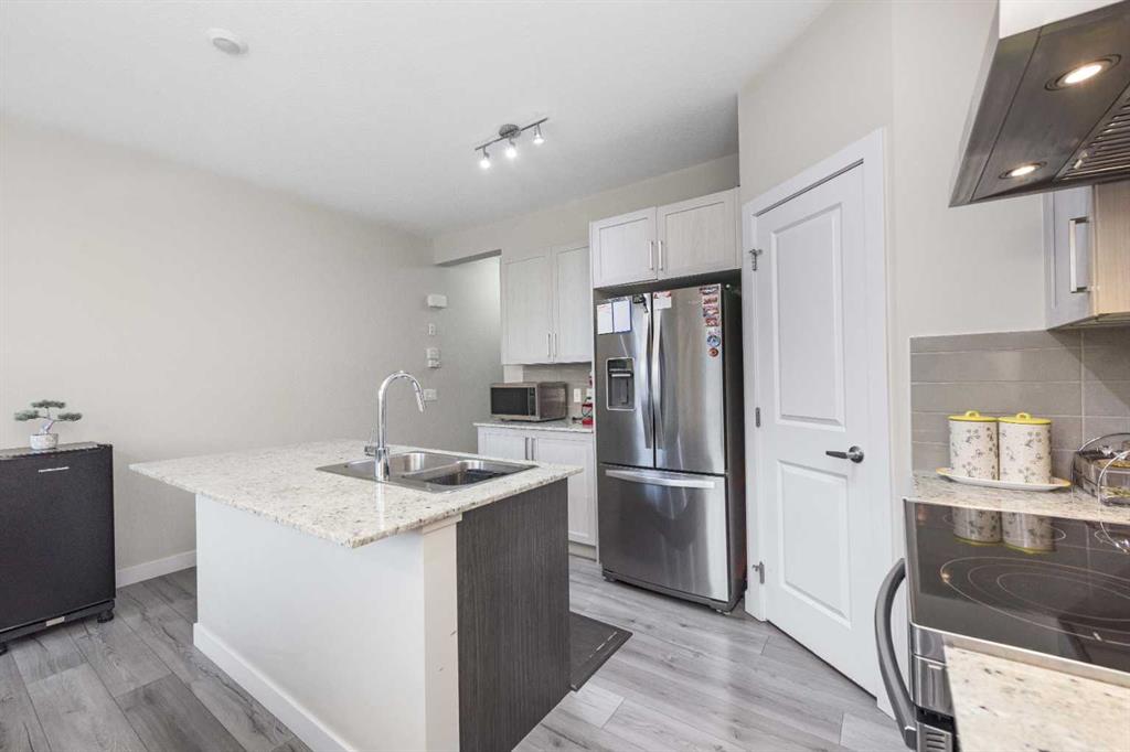 Welcome to this beautifully maintained row townhouse in the highly desirable community of Sage Hill. Perfectly positioned backing onto a tranquil ravine and lush green space, this home offers a peaceful setting rarely found at this price point. The main level features a single attached garage for secure, convenient parking. Inside, a spacious mudroom provides plenty of room to organize everyday essentials. This level also includes a versatile bedroom or office complete with its own full bathroom, an ideal setup for guests, extended family, or working from home. Upstairs, the bright and open main living area is designed for both style and comfort. The upgraded kitchen showcases stainless steel appliances, including a gas range, and offers ample counter space for cooking and entertaining. The adjoining dining area opens directly onto the patio and green space, creating a seamless indoor-outdoor living experience. The living room is warm and inviting, highlighted by a beautifully crafted accent wall and large windows that fill the space with natural light, perfect for relaxing evenings or hosting friends. On the upper floor, you’ll find two generously sized bedrooms, each with its own ensuite bathroom for added privacy and convenience. The primary suite also includes a walk-in closet, providing excellent storage. This home has been exceptionally cared for and is attractively priced, offering outstanding value in a sought-after location. With close proximity to schools, parks, shopping, and public transit, it combines everyday convenience with the serenity of nature right outside your door. Don’t miss the opportunity to make this lovely townhouse your new home. Contact your realtor today to schedule a private showing.