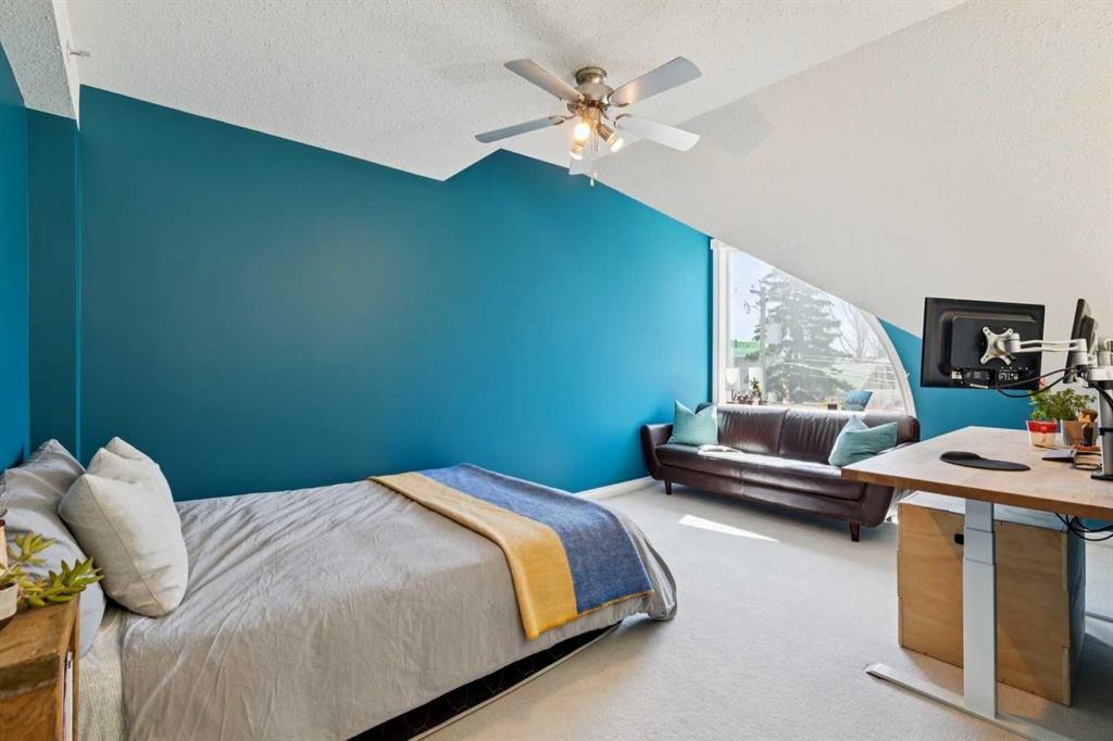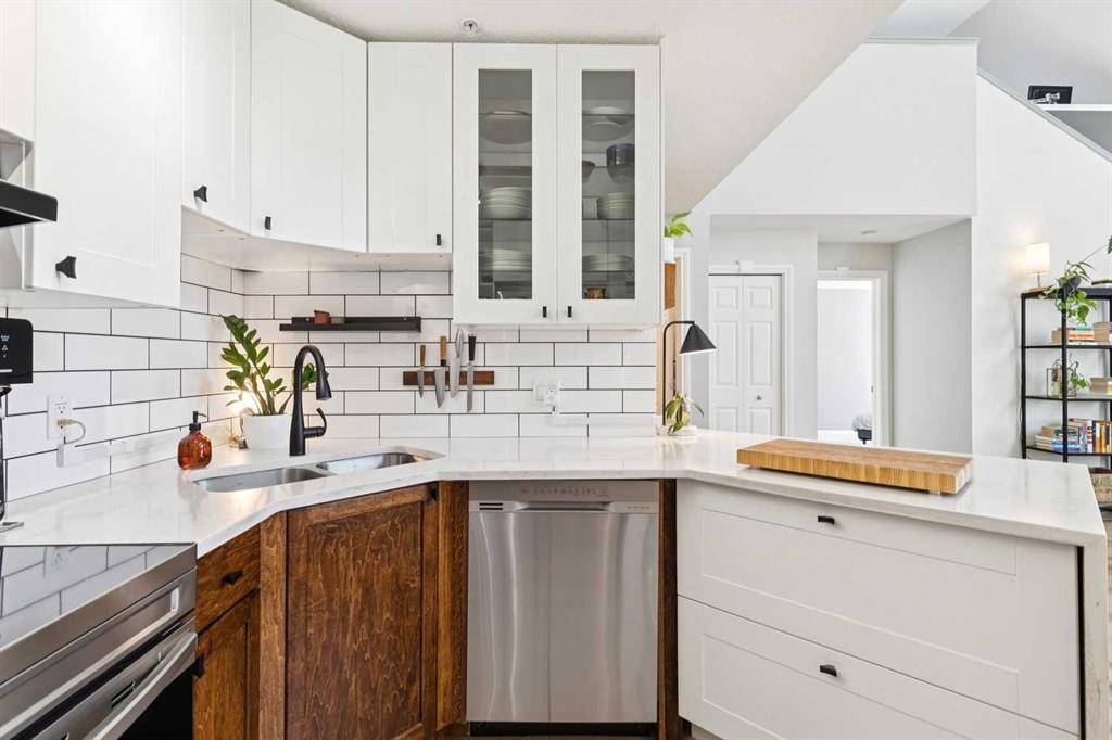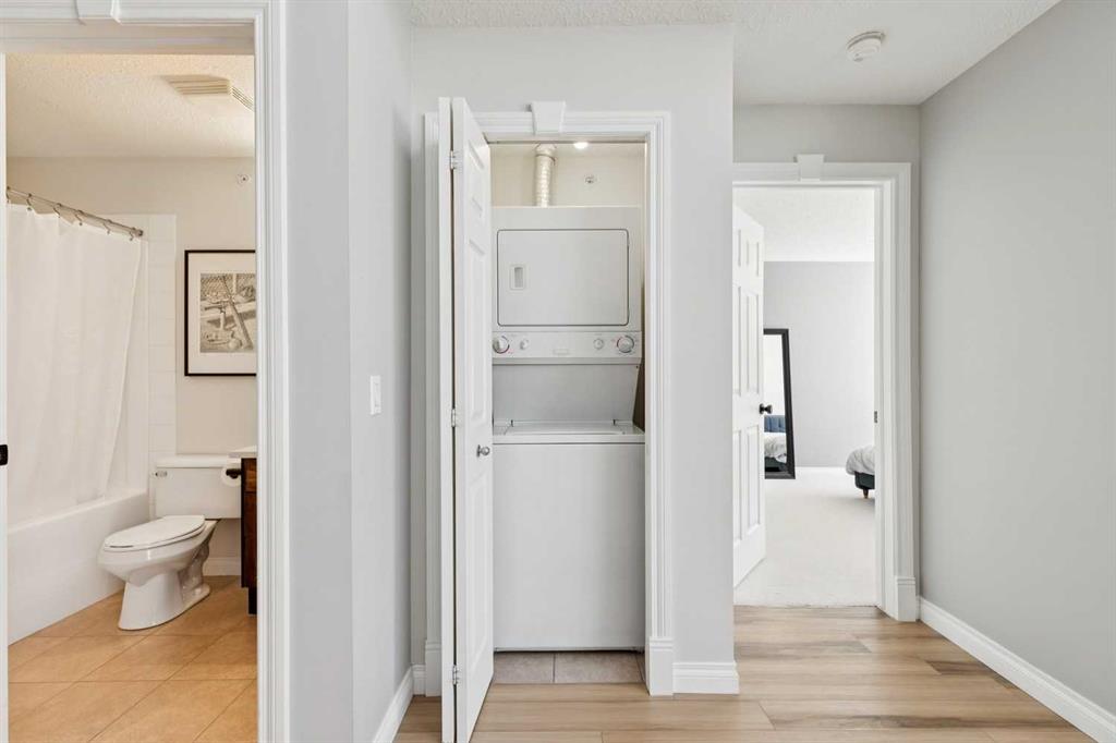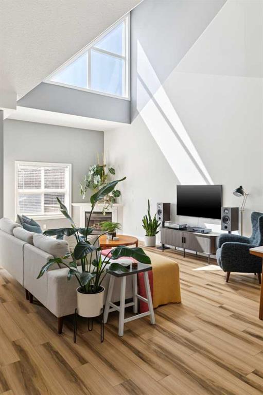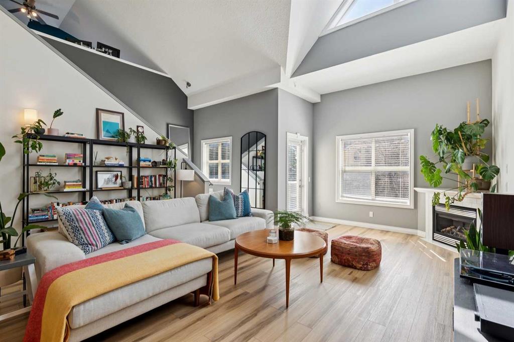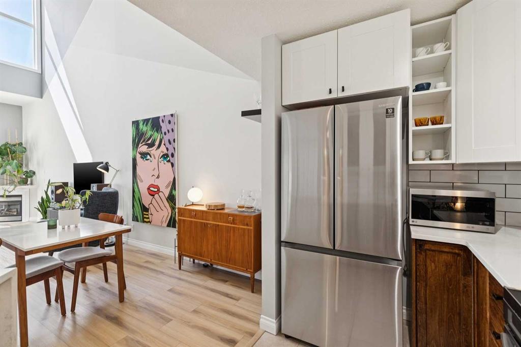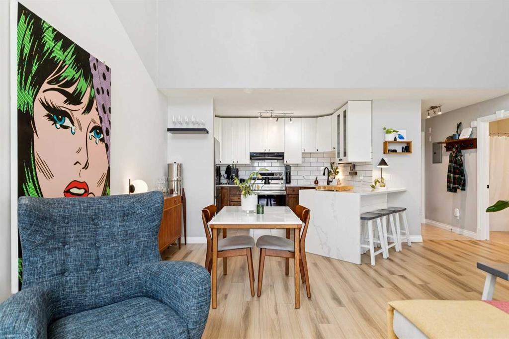 Welcome to this gorgeous 1,241 sqft TOP FLOOR 2-storey condo in the heart of vibrant Marda Loop, offering 1 spacious bedroom with a walk-through closet, 2 full bathrooms (one is an ensuite), a versatile loft that could be used as a second bedroom, in-floor heat, and a long private balcony! Soaring 2-storey ceilings – peaking at an impressive 25 feet – and expansive windows flood the space with natural light, creating an open, airy feel throughout. Step inside to discover thoughtful updates throughout, including a fully updated kitchen, bathrooms, paint, flooring, and lighting. The sleek kitchen features stainless steel appliances, updating cabinetry, a breakfast bar, quartz counters, in-floor heat, and opens to a huge living room with a beautiful gas fireplace and a dining area, perfect for entertaining. Luxury vinyl plank flooring adds warmth and durability to the space. The private primary suite is tucked away with direct access to the balcony, a walk-through closet, and a large ensuite bathroom with a corner soaker tub, separate stand-up shower, and updated vanity, sink, faucet, and light fixture. A second full bathroom near the front entry (rare for a one-bedroom home) offers a tub/shower combo and quartz counters for added flexibility, and in-unit laundry is also included. Upstairs, the bright and spacious loft provides endless possibilities for a bedroom, home office, gym, reading nook, or play area. Enjoy summer evenings on your south-facing private balcony with a gas BBQ hook-up, and take advantage of the titled underground parking stall, secure storage locker, and convenient bike storage. Located just steps from boutique shops, trendy cafĂ©s, and some of Calgary’s best restaurants, plus minutes from 17th Avenue, downtown, and fantastic recreational amenities like an outdoor pool, tennis courts, skating rink, ball diamond, and public library – just a few short blocks away! This move-in-ready home is a rare find – book your showing today!