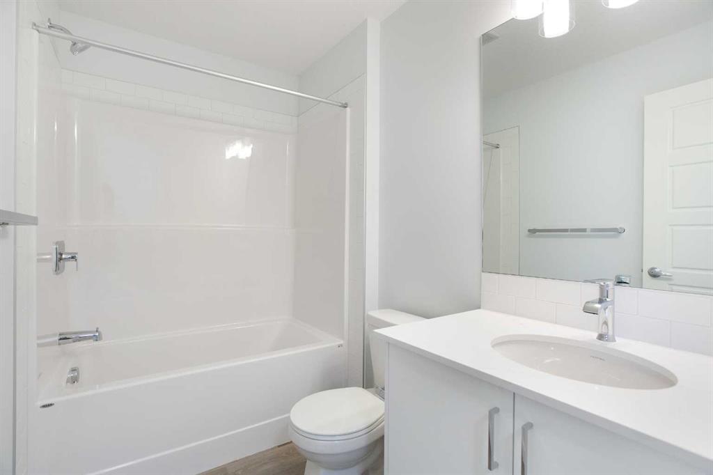 Upstairs, you’ll find cozy yet elevated comfort, with plush carpet and an 8lb underlay in the bedrooms, upper hallway, and stairs. The layout includes spacious bedrooms, a full main bathroom, and a tranquil primary retreat—all finished with a consistent attention to quality and detail. Bathrooms feature quartz counters, chrome faucets, high-efficiency toilets, and a fresh tile backsplash for a clean, modern aesthetic.