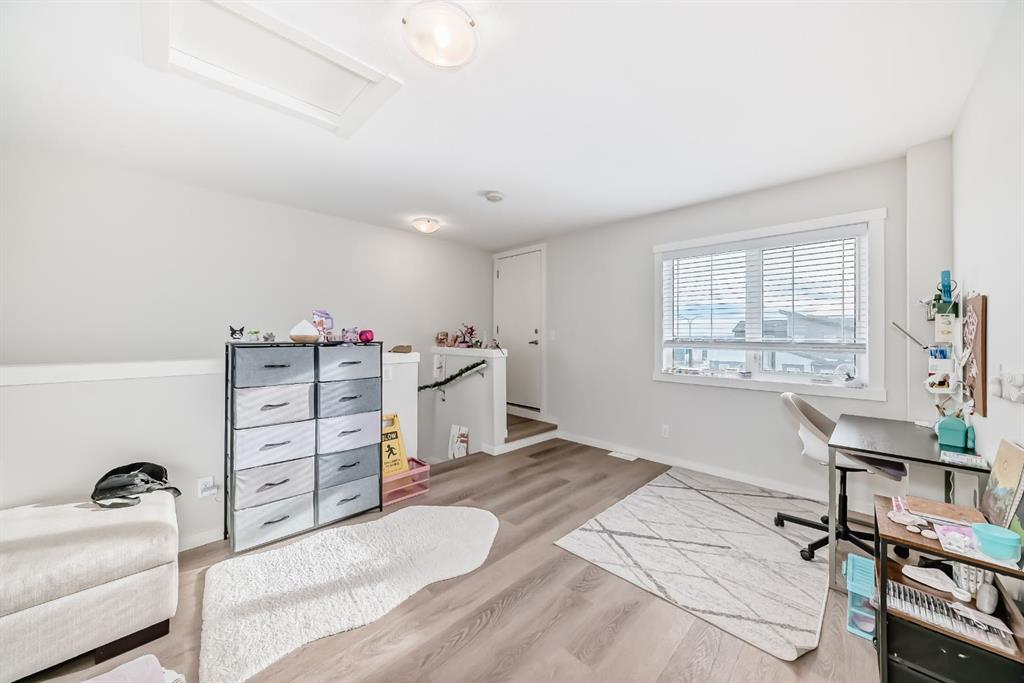 Welcome to Zen Urban District by Avalon Master Builders, featuring the Ambrosia floor plan. This beautifully maintained townhome boasts stylish touches throughout, it has a private back yard and a pleasant surprise on the third level – extra developed living space! Perfect for a third bedroom, kids playroom, yoga retreat or home office. The main floor kitchen provides clear views of the dining and living areas which is perfect for entertaining. On the second floor, this unit features two private bedrooms each with an ensuite, along with a convenient stackable washer/dryer and linen closet. Out back, you can enjoy a private, fenced back yard – perfect for barbecues and summer fun. On the third level, a rooftop patio! If you choose, there is additional space can be developed and used as you wish! Seton is already established with an abundance of amenities including South Health Campus, shopping, theatres, restaurants, parks, and pathways. Bus stop at door steps. The world’s largest YMCA, equipped with a surf simulator, NHL-sized ice rink, climbing wall, and more, is also nearby. Welcome home to comfort, convenience, and modern living!