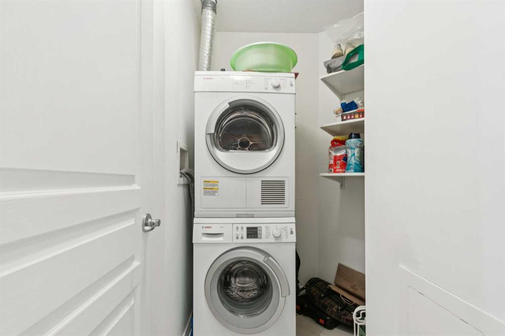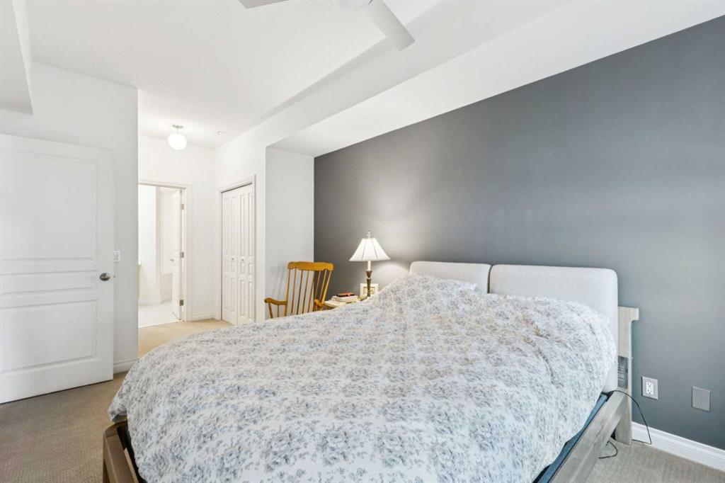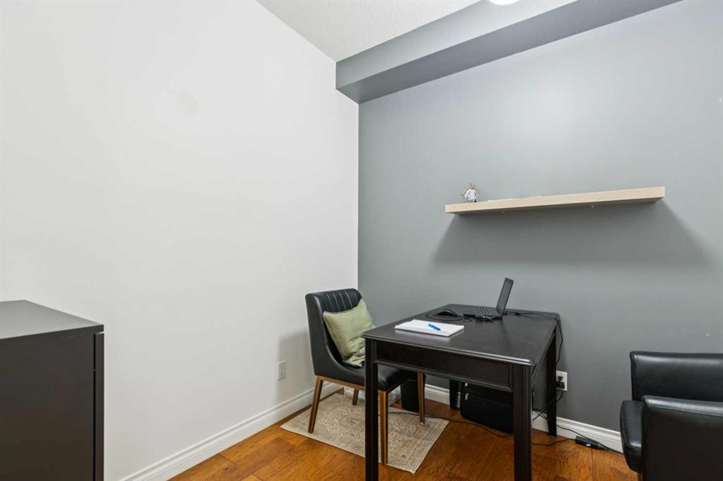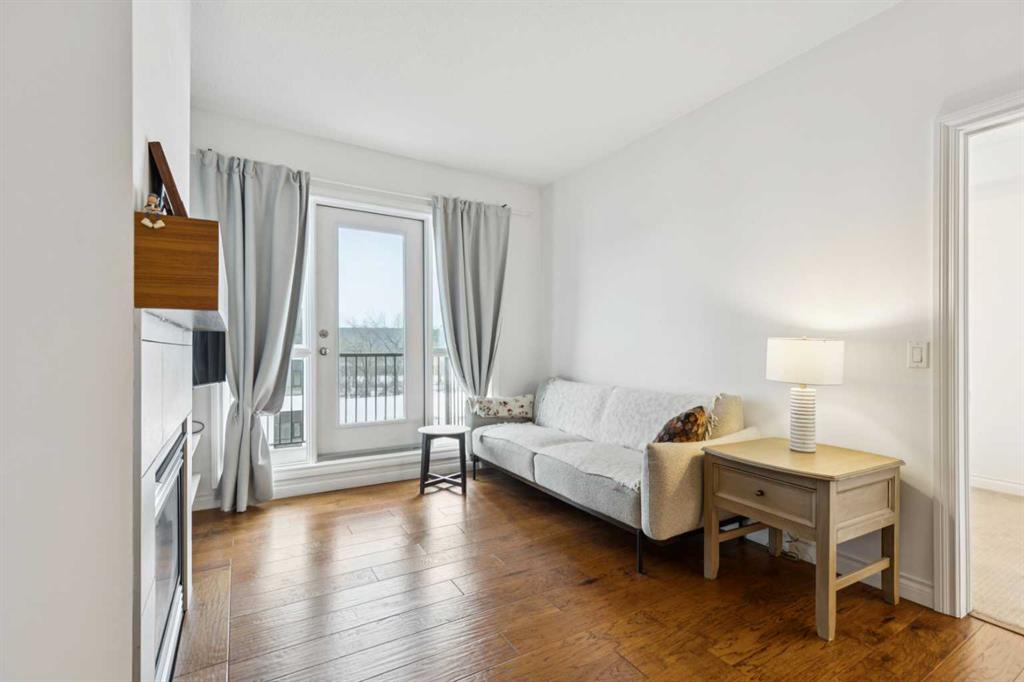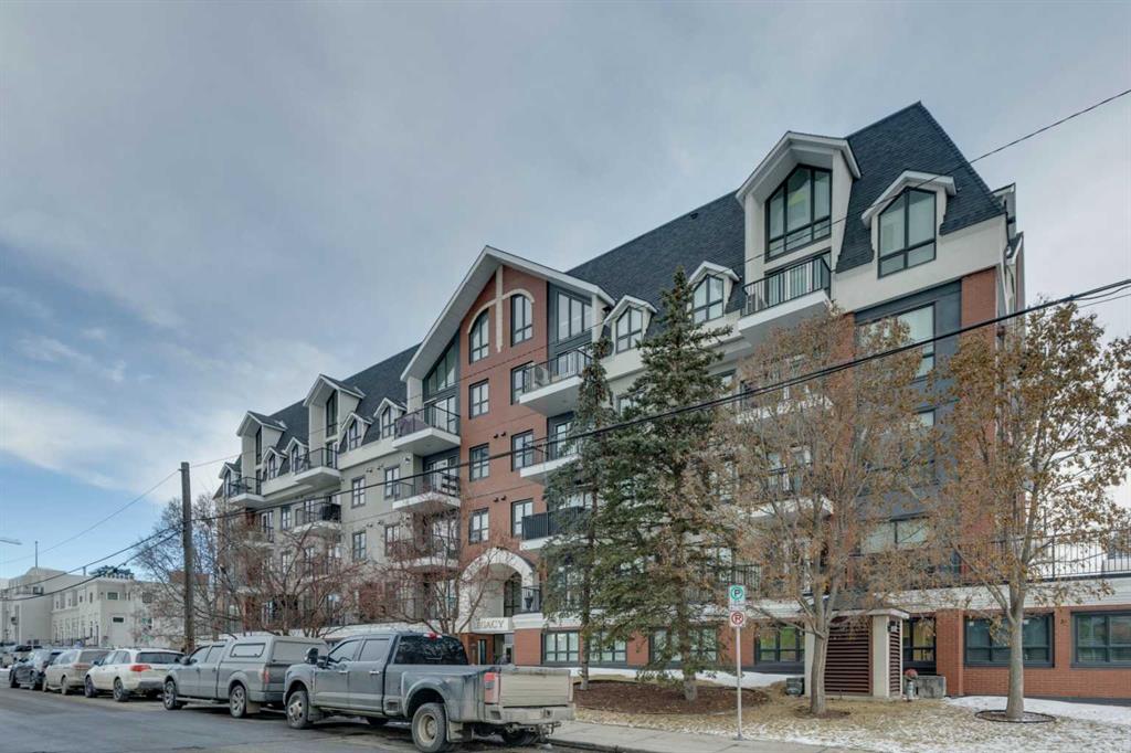 Presented in pristine move-in-ready condition, this spacious 4th floor condo is perched to enjoy it’s fantastic location at the Legacy building. This sunny south facing unit enjoys plenty of natural light pouring into the spacious 1038SqFt open plan, all being just steps to walking paths, downtown and the river. This spacious two bedroom two bathroom unit plus a den/office features nine foot ceilings, distressed wide plank hardwood, tile and warm carpeting in the bedrooms. There is a large living room with a cozy gas fireplace with designer built in surround. The expansive kitchen features plenty of cabinet storage, full tile back splash and loads of quartz counter space. The generous balcony has a convenient gas line to enjoy BBQ’s, perfect for evening entertaining and unwinding. In-suite laundry, in floor heat, heated titled underground parking and assigned storage complete this fantastic unit in a beautiful, well run building. Gorgeous, functional designer style, excellent location and enduring value make this a must-own and stable investment. A great lifestyle near the Elbow River pathways, MNP Sports Centre and all the amenities of downtown only steps away. Welcome home!