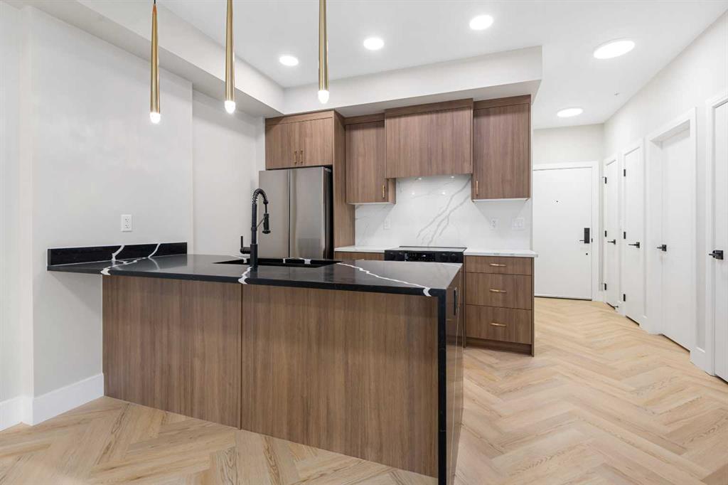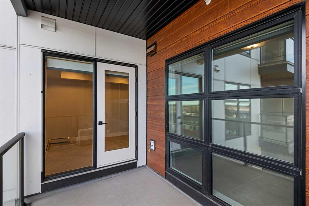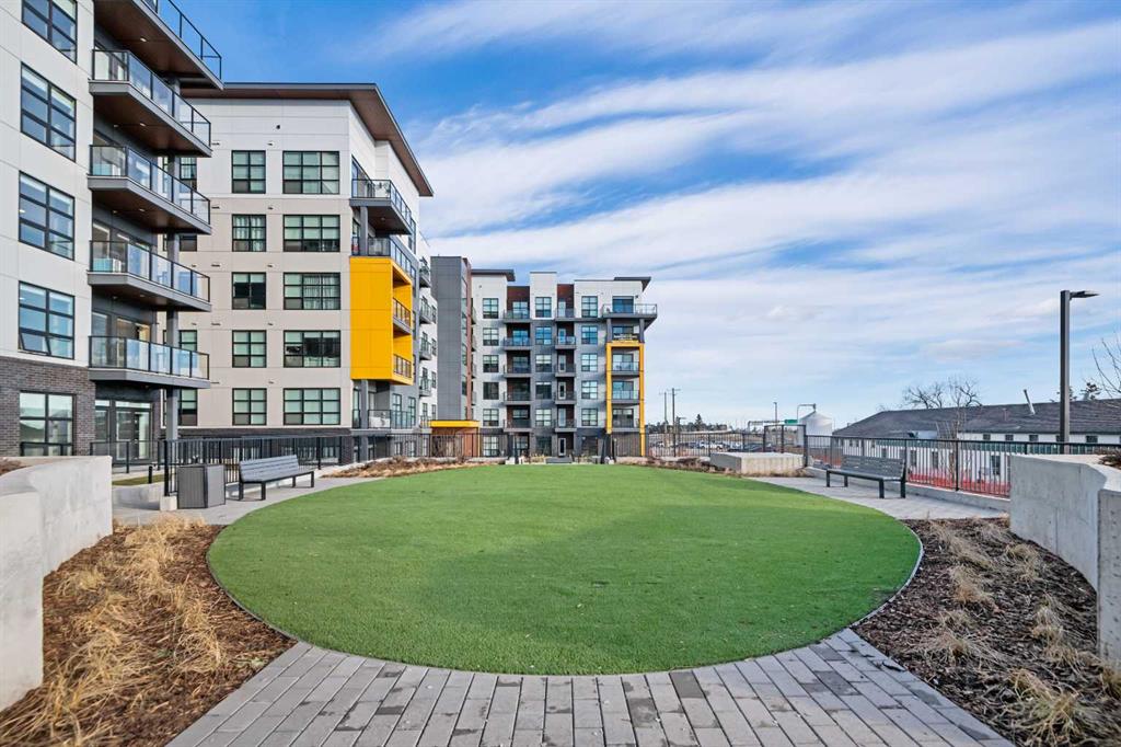 Welcome to the “Azzuro” floorplan by Rohit Homes Calgary, a thoughtfully designed 1-bedroom + den, 1-bathroom residence that blends timeless style with modern functionality. Located on the 4th floor of the highly sought-after Quesnay at Currie Barracks, this south-facing unit enjoys excellent natural light throughout the day and offers the added convenience of being situated near the elevator—ideal for everyday ease and accessibility.