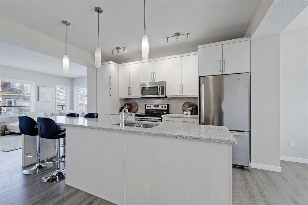 Welcome to refined townhome living, set within one of Cochrane’s most scenic and thoughtfully planned communities! Backing onto rolling natural landscapes with elevated sightlines, this modern three-storey residence offers the rare balance of contemporary design, functional space, and everyday comfort, all just minutes from downtown Cochrane and the Bow River pathway system.