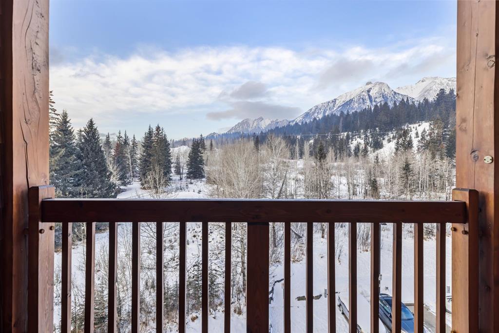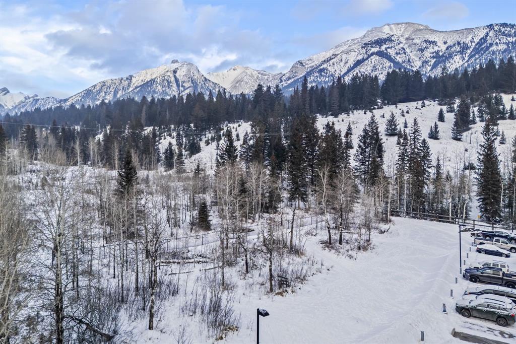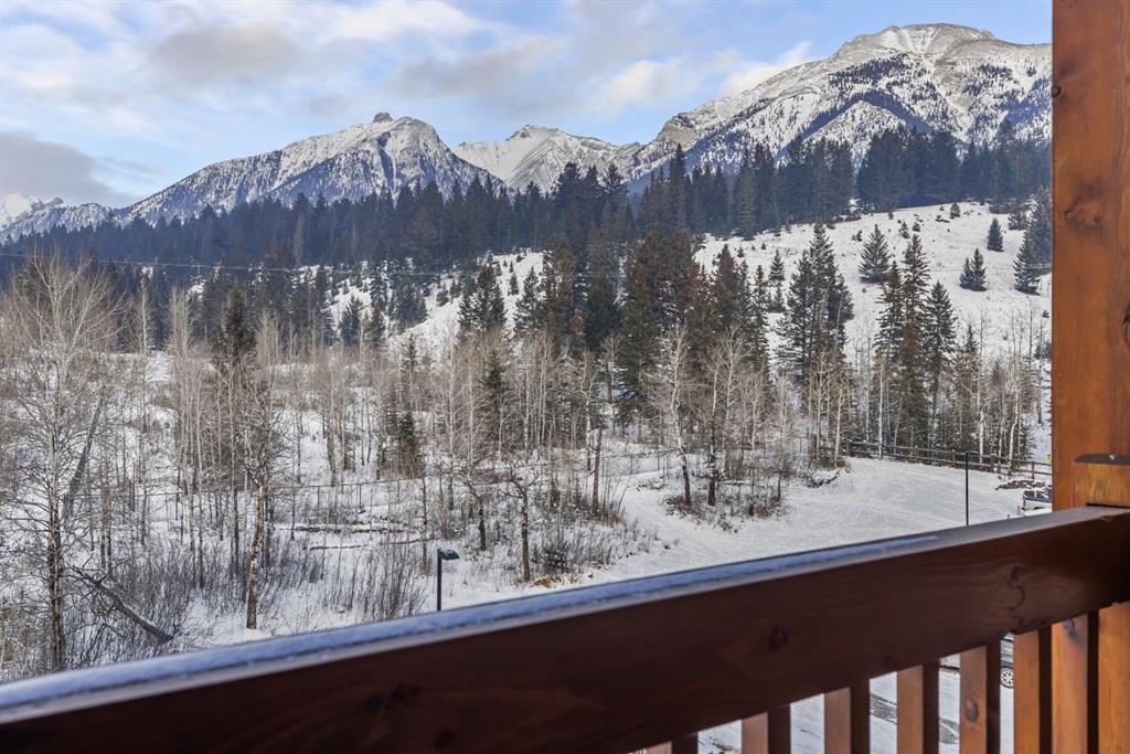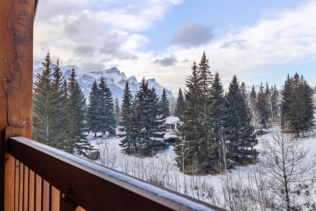 No short term rental permitted. Freshly painted and beautifully maintained, this top-floor 2 bedroom, 2 bathroom condo offers privacy, natural light, and a true Canmore setting. Located on the quiet backside of the building and overlooking treed land, it enjoys mountain views and a peaceful, tucked-away feel. The large view deck is ideal for relaxing evenings under the peaks.