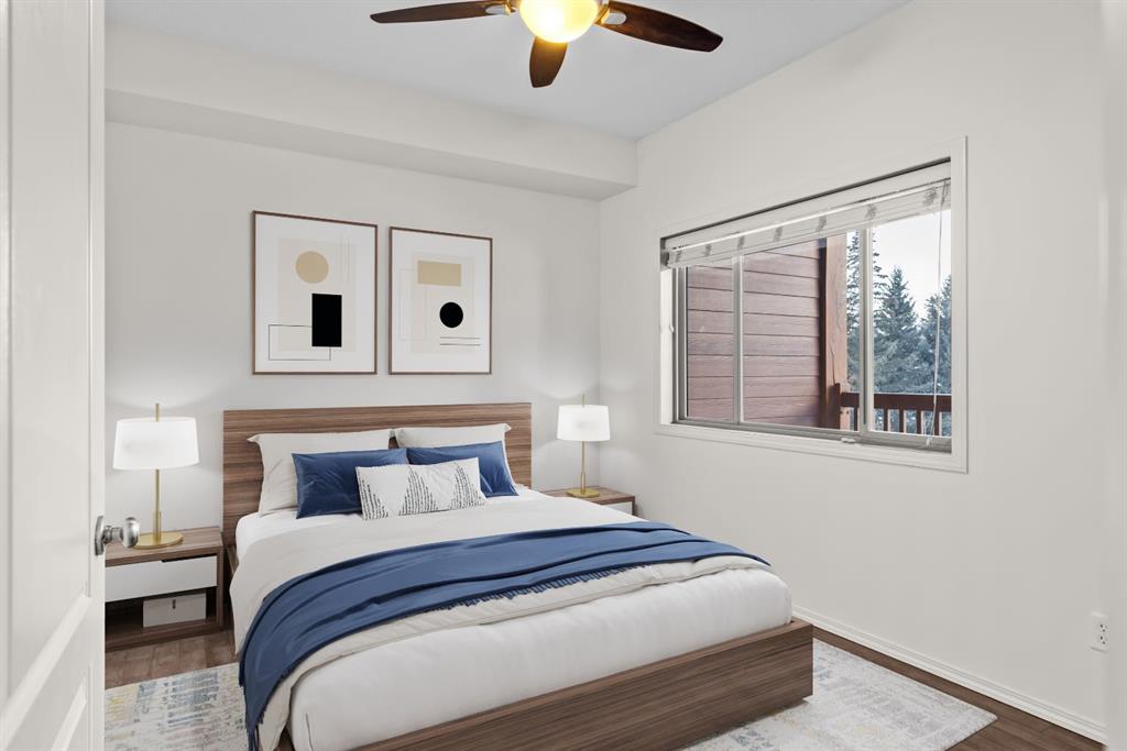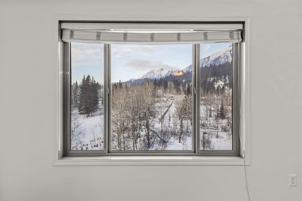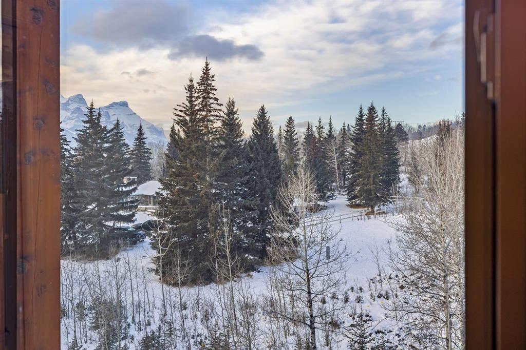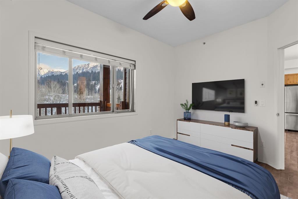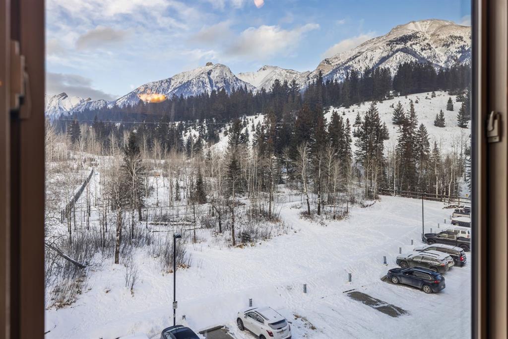 No short term rental permitted. Freshly painted and beautifully maintained, this top-floor 2 bedroom, 2 bathroom condo offers privacy, natural light, and a true Canmore setting. Located on the quiet backside of the building and overlooking treed land, it enjoys mountain views and a peaceful, tucked-away feel. The large view deck is ideal for relaxing evenings under the peaks.