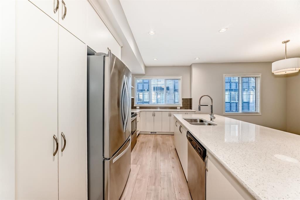 **AMAZING OPPORTUNITY** Welcome to Cedarglen’s Elements at Nolan Hill! This bright and spacious 3 level townhouse offering close to 1,700 sq ft of stylish living space with 3 bedrooms and 2.5 bathrooms—perfect for families, professionals, or anyone looking for low-maintenance living in a vibrant community. The entry level welcomes you with a versatile flex room ideal for a home office, gym, hobby space, or guest room, along with convenient access to the oversized double garage—perfect for vehicles, gear, and extra storage. Upstairs, you’ll find a beautifully open-concept main floor featuring a modern kitchen complete with stainless steel appliances, quartz countertops, subway tile backsplash, and a large island that’s perfect for entertaining. The spacious dining and living areas flow seamlessly onto a private deck equipped with a BBQ gas line—ideal for summer evenings. The top floor features a generously sized primary bedroom with a walk-in closet and 4-pc ensuite feat. double sinks and a large glass shower. Two additional bedrooms, a full bath, and a convenient upper-floor laundry area with Whirlpool washer and dryer round out the level. This well-managed complex showcases a stylish Hardie Board and stone exterior, and your condo fees include lawn care and snow removal. Enjoy the beautifully landscaped green spaces, visitor parking, and walkable access to local shops, parks in this welcoming neighbourhood. Don’t miss your chance to call this exceptional unit home.
