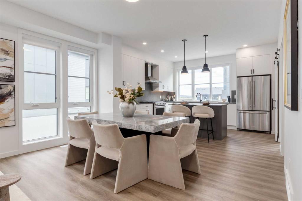 The Village at Trinity Hills (Wolf Run – Phase 2) is an immaculately designed urban town-home community, ideally located along the iconic Paskapoo Slopes in Southwest Calgary. Your new residence is nestled within 160 acres of an environmental reserve with 17 kilometres of hiking and biking trails and amazing views of COP/WinSport. In addition to being surrounded by nature, you’re only a 5 minute walk from all of the urban conveniences the community has to offer (Save-On-Food, PetSmart & Cobbs Bread, to name a few). The Village is less that 1 hour to the Rocky Mountains, yet just 15 minutes to downtown. Your new BIRCH unit has 1807 sq.ft. (RMS Measurement) of pristine designed living space, with 3 bedrooms, 2.5 bathrooms, formal entry, second floor laundry, chef quality kitchen, 2 large front facing private patios, secluded office area, walk-in pantry, and a double car attached garage. Your new home comes complete with w/ quartz counters, designer tile, s/s appliances, luxury plank flooring, modern fixtures and finishes, and A/C. The Village at Trinity Hills is built by Metropia, one of Canada’s top multifamily developers with a pristine reputation for innovation and quality construction. All photos are of our BIRCH show home, and not the actual unit. Taxes, lot size, and possible HOA have yet to be determined. This unit is currently under construction with possession slated btw mid December 2025 to Mid February 2026. Please take note, the RMS measurements on MLS are larger than the builder floor plans in the sales center, as they reflect the actual measured size of the built units. Unlike typical cases where measurements decrease post-construction, ours increased. Please contact your agent today for more information regarding our sales center hours, all of the available lots, floor plans, pricing and finishing specifications. This home already has its finishing specifications and upgrades selected. Price includes unit, upgrades and GST.