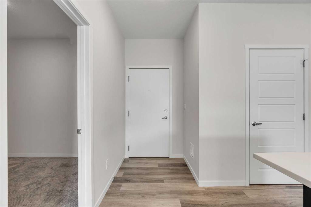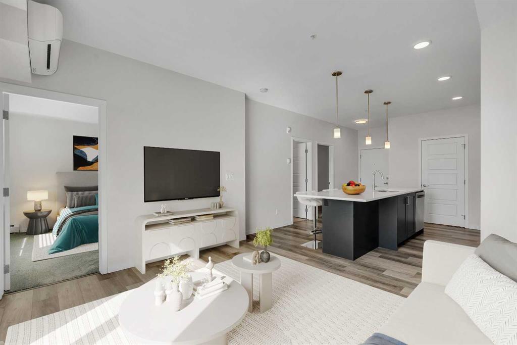 BRIGHT, BEAUTIFUL & MOVE-IN READY in the heart of Harvest Hills!! Welcome to Unit 410 at 200 Harvest Hills Place NE — a spectacular south-facing, top-floor 2 bedroom, 2 bathroom condo. Perched on the top floor with a coveted south-facing exposure, this stunning 694 sq ft residence is drenched in warm natural sunlight from morning to evening, creating an atmosphere that feels bright, welcoming, and effortlessly uplifting every single day. The thoughtfully designed open-concept layout flows beautifully between the kitchen, dining, and living areas, creating a versatile and connected space that’s equally suited to quiet evenings in or lively gatherings with friends & family. High-quality vinyl plank flooring grounds the space with warmth and sophistication, while the neutral colour palette throughout provides the perfect canvas for your personal style. At the heart of the home lies a truly IMPRESSIVE KITCHEN that will delight even the most passionate home chef. Premium stainless steel appliances, gleaming quartz countertops, massive centre island, and sleek modern cabinetry combine to create a space that is as functional as it is beautiful. An artfully designed herringbone marble tile backsplash adds a touch of personality and flair, making this kitchen a genuine focal point of the home. The PRIMARY BEDROOM is a true retreat — a peaceful haven designed for rest and relaxation. Generous in size, it comfortably accommodates your furnishings while still feeling light & airy. The private ensuite bathroom elevates the experience further, featuring a sleek modern vanity with quartz countertops and a beautifully appointed tub & shower combo surrounded by premium herringbone marble tiles that brings a touch of spa-like luxury to your everyday routine. The 2nd bedroom is equally impressive in its versatility, offering a wonderful space that can serve as a guest room, a home office or gym — whatever suits your lifestyle best. A well-appointed 4-piece main bathroom with upgrades serves this space and your guests with ease and convenience. Step through the living area onto your LARGE PRIVATE SOUTH-FACING BALCONY and prepare to fall in love. Enjoy seamless indoor-outdoor living as you soak up the abundant Calgary sunshine, take in the open views, and savour your morning coffee or evening glass of wine in the fresh air. Practicality meets elegance with the addition of a convenient IN-SUITE LAUNDRY ROOM, keeping life effortlessly organized. This exceptional unit also includes a TITLED UNDERGROUND PARKING STALL to keep your vehicle safe & warm through Calgary’s winters. Situated in the vibrant & welcoming community of Harvest Hills, you’ll enjoy easy access to a fantastic array of shopping, dining, schools, parks, and major roadways, making daily life as convenient and enjoyable as possible. Whether you’re a first-time homebuyer, a savvy investor, or someone looking to downsize without sacrificing comfort or style, this is the property for you. CALL TODAY to book YOUR PRIVATE TOUR!!
