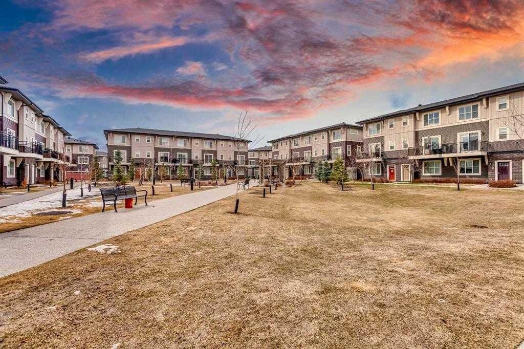 BEAUTIFUL & SPACIOUS 1560+ SQ. FOOT 3-STOREY TOWNHOME IN DESIRABLE CORNERSTONE, COMPLETE WITH A DOUBLE ATTACHED HEATED GARAGE FOR LESS THAN $390K! THIS HOME FEATURES A BEAUTIFUL COURTYARD PARK RIGHT OUTSIDE THE FRONT DOOR. IMAGINE BEING ABLE TO WATCH YOUR KIDS PLAY WITH NEIGHBORS IN THE PARK FROM THE COMFORT OF YOUR LIVING ROOM! As you walk inside the townhome, you will immediately notice the stunning upgraded tiled flooring throughout the entrance foyer, stretching to the access for the HEATED double attached garage! From inside your cozy home into your warm car and off you go, without feeling the cold or touching the snow! The entrance level features the 1st of 4 bedrooms in the home, complete with a closet & large window facing the park; perfect for a guest bedroom, home office, kids’ playroom, or home gym. Head upstairs to the OPEN-CONCEPT main floor—notice the abundance of natural light? With huge south-facing windows in the dining room and unobstructed park-facing windows in the living room, this home is always filled with sunlight! The kitchen is fit for any home chef while keeping functionality for your family in mind: featuring a kitchen island, ample counter & cabinet space, and a dedicated spacious dining room capable of easily hosting an 8-seat dinner table! The spacious living room is easily able to accommodate a huge comfy sofa across from the TV mount location, with built-in shelving & wire-hiding conduits. From the living room, access the park-facing balcony—the perfect outdoor space to enjoy your morning coffee or host a summer BBQ! This floor is completed with a half bathroom for convenience & guests, plus an additional nook for a work-from-home desk. The upper level hosts the massive master bedroom, easily able to accommodate a king-size bed and all your additional bedroom furniture. This room features an essential ensuite full bathroom complete with upgraded tile floors and a full bathtub. Tired of fighting for closet space? Check out the spacious walk-in closet! The upstairs features another 2 spacious bedrooms and another full bathroom complete with another bathtub. Still upstairs, the convenience of full-sized stacked laundry. AS THEY SAY: LOCATION, LOCATION, LOCATION! Grocery Store, Many Restaurants, Major Banks, & Various Retail Stores are all within walking distance! This home is minutes from major highways including both Stoney & Deerfoot Trail, providing quick access to all areas of Calgary. Lastly, coming back to the townhome complex, this well-managed condominium offers low condo fees! HOW DOES IT GET BETTER THAN THIS? BOOK YOUR SHOWING TODAY!!