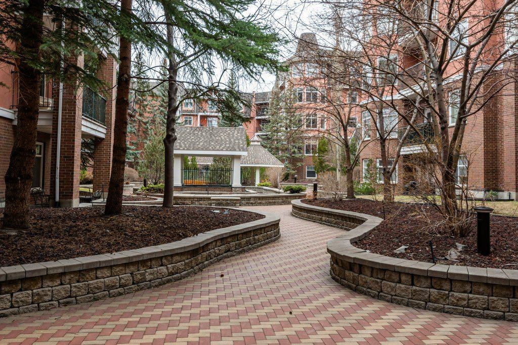 Tucked away in the sought after community of Erlton, this is your opportunity to experience the best of inner city living without compromise. Welcome to Rivergrand Estates, an urban retreat where nature and lifestyle come together effortlessly. This unbeatable location places you steps from the serene pathways of the Elbow River & Lindsay Park, and the MNP Community and Sport Centre, offering nature and recreation right out your door. An easy walk takes you to the C-train & Stampede Grounds making it the perfect home base for Stampede and year round events at the BMO Centre and Scotiabank Saddledome. Just minutes away, the vibrant Mission District invites you to explore 4th Street’s restaurants, cafés, and boutique shops, truly bringing convenience and connection to your doorstep. Inside, your spacious 1,160 sq ft two bedroom, two bathroom home features a thoughtfully designed and unique floorplan that balances both function and comfort. Distinct living and family spaces give you the flexibility to live, relax, and entertain with ease. Your upgraded kitchen showcases granite countertops, an island, pantry, and updated appliances, flowing seamlessly into a generous dining area that makes hosting effortless.Your primary suite includes a walk through closet leading to your five piece ensuite complete with a soaker tub. The second bedroom, framed with French doors, gives you the flexibility to create a home office, wellness space, or guest room to suit your lifestyle. After a long day, unwind on your spacious private balcony overlooking the peaceful courtyard, with beautiful downtown views as your backdrop. You also benefit from new modern blinds, titled underground parking (354), a car wash, assigned storage, a party room, and a library, adding everyday ease and comfort to your lifestyle. Whether you are a young professional seeking vibrant city living or a downsizer looking for comfort without compromise, this home offers a rare blend of tranquility, connection, and convenience in one of Calgary’s most charming hidden gems.