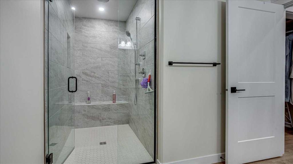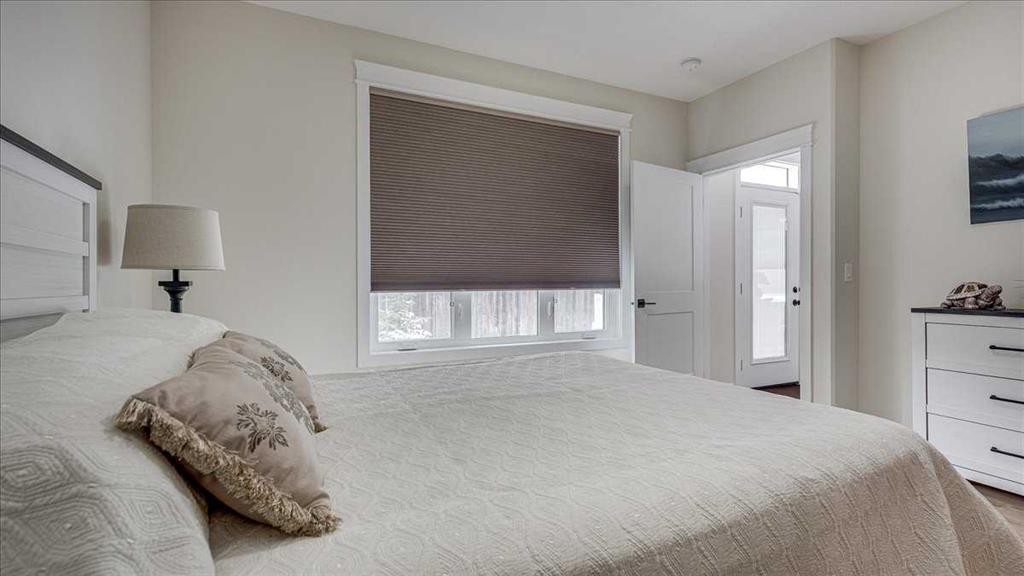 The spacious primary suite serves as a private retreat, complete with a walk-in closet featuring custom wood shelving and a spa-inspired ensuite. Here you’ll find dual sinks, beautiful quartz counters, and an oversized glass and tile walk-in shower with a built-in bench. For added ease, laundry is conveniently located within the suite—all intentional design choices that enhances day-to-day living. Designed with accessibility in mind, all doorways accommodate wheelchair use, and the home supports aging-in-place and long-term residency.