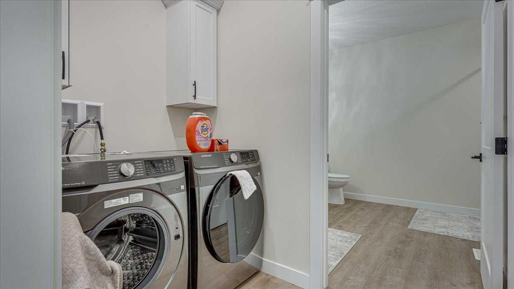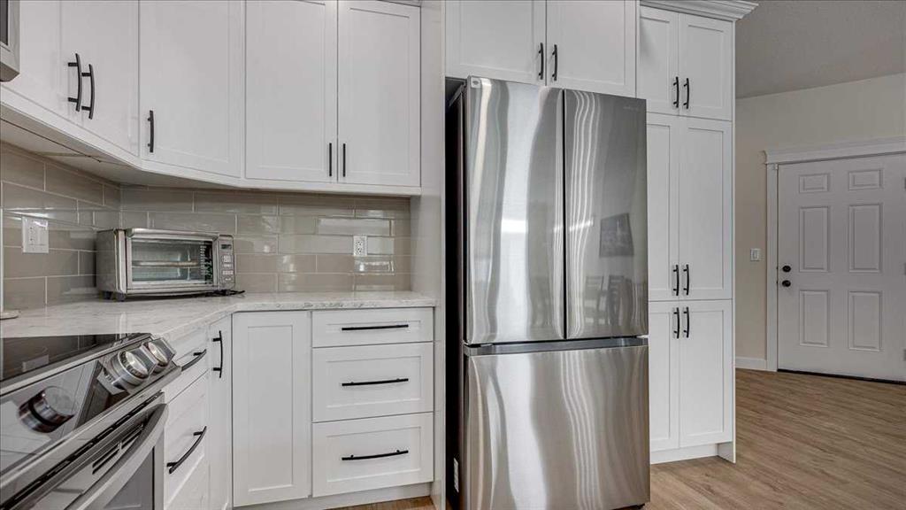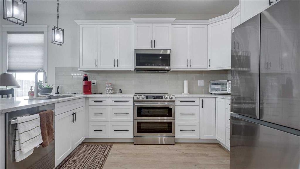 At the heart of the home, the well-designed U-shaped kitchen combines elegance with practicality. Featuring quartz countertops, gorgeous backsplash, soft-close cabinetry, pot lighting, and an upgraded stainless steel appliance package it offers generous workspace and storage while keeping you engaged with the main living areas. Durable, low-maintenance flooring runs throughout, providing both style and long-term convenience.