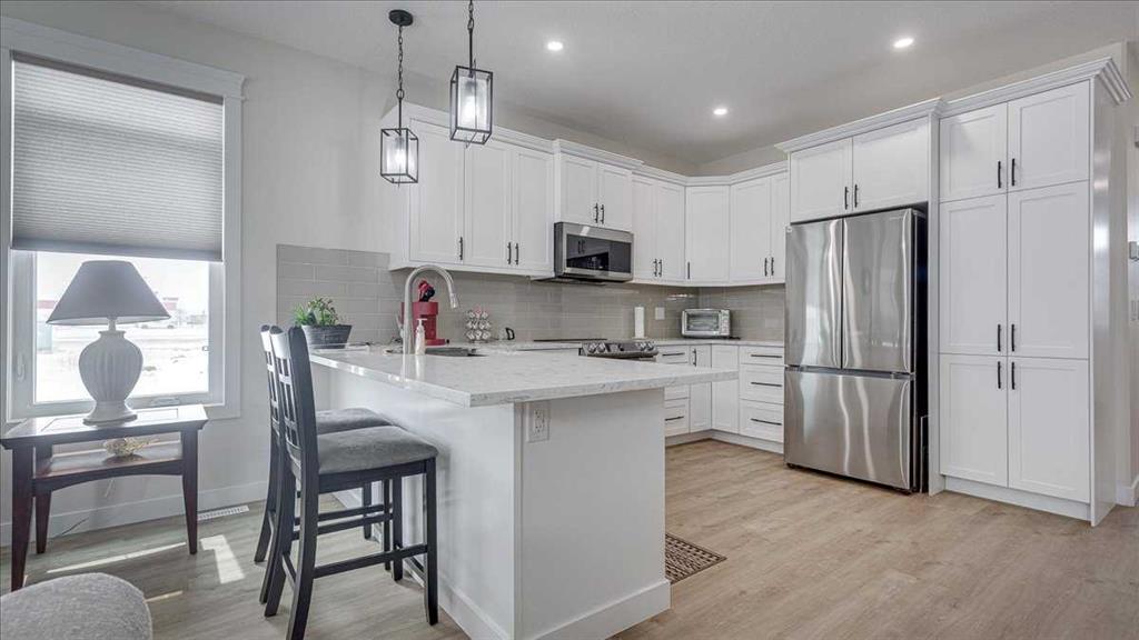 Welcome to this beautifully appointed bungalow-style half duplex in the sought-after community of Cornerstone Village, nestled in the charming town of Olds. Thoughtfully designed for comfortable, low-maintenance living, this home offers an exceptional blend of style, functionality, and ease—perfect for those ready to embrace a refined, simplified lifestyle without compromise.