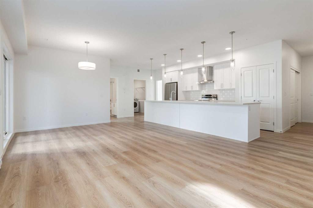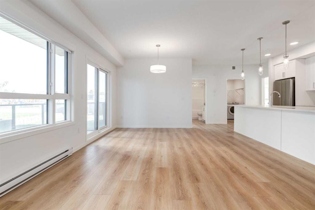 Introducing SETON SERENITY, a highly sought-after development in SETON, Calgary. BUILT BY CEDARGLEN LIVING, WINNER OF THE Customer Insight BUILDER OF CHOICE AWARD, 6 YEARS RUNNING! BRAND NEW CORNER UNIT, “L3” floor plan with high-spec features. You will feel right at home in this well thought-out 1059.39 RMS sq.ft. (1125 sq.ft. builder size) 2 bed, 2 bath home with open plan, 9′ ceilings, LVP flooring through-out (upgraded, no carpet), Low E triple glazed windows, electric baseboard heating, BBQ gas line on the patio, A/C Rough in, and Fresh Air System (ERV). The kitchen is spectacular with an extended island upgrade, quartz counters, undermount sink, S/S appliances, upgraded Chimney Hood Fan, and pantry. The extended island is stunning and transitions into the spacious living & dining area, perfect for entertaining. The spacious primary bedroom has a large bright window, sizeable walk-in closet and 4 pc ensuite with extra drawers & full height tile upgrade. 1 additional bedroom located across the unit for noise reduction/privacy and 4pc bathroom (also with upgraded full height tile) located nearby. Laundry & storage closet is thoughtfully planned, definitely a must see (washer/dryer included). Highlights include: upgraded lighting package, sound reducing membrane to reduce sound transmission between floors, clear glass railing to balconies and 1 titled underground parking stall included. There are many bespoke amenities outside your front door, so park the car and put on your walking shoes. The LARGEST YMCA IN THE WORLD and the SETON HOA are just around the corner. SOUTH HOSPITAL, shopping, restaurants and cafes are all just a short stroll away. PET & RENTAL FRIENDLY COMPLEX. VIRTUAL TOUR AVAILABLE!