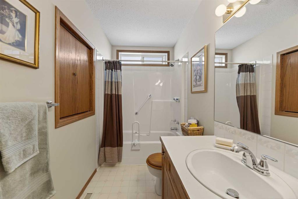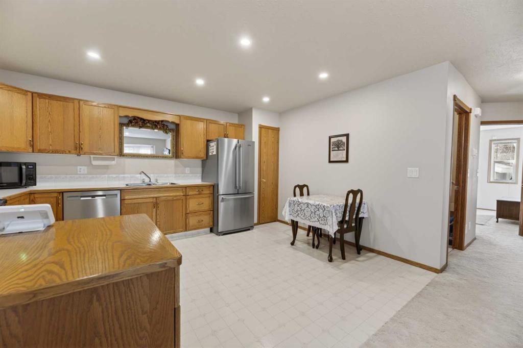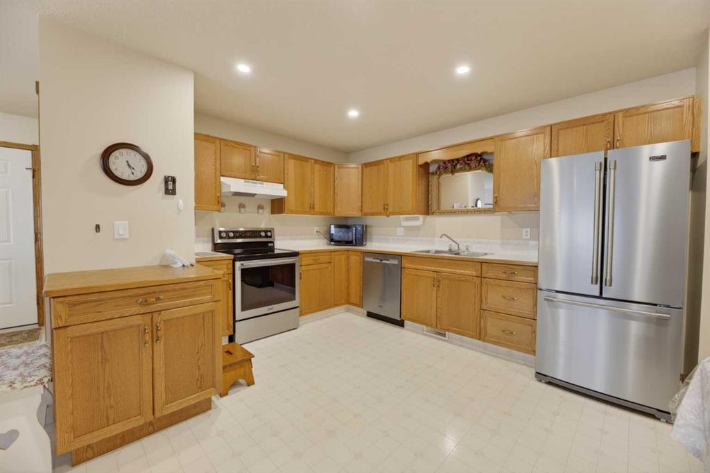 Welcome to this immaculate 50+ half duplex, ideally located in a quiet cul-de-sac and backing onto walking paths—perfect for those seeking a peaceful, low-maintenance lifestyle. This well-cared-for home offers 2 bedrooms on the main floor, including one with direct access to a covered, west facing enclosed 13’2 x 9’10 deck—an ideal space to enjoy your morning coffee or unwind in the evenings. The kitchen has lots of oak cabinets and space for a small table or a moveable island, a combination dining/livingroom with 2 large bay windows, 4-piece main bathroom, and a convenient 2-piece ensuite. Main floor laundry adds to the ease of everyday living, and a door off the front entrance provides direct access to the attached single garage. The fully developed basement expands your living space with plenty of storage space, a 3-piece bathroom and two versatile areas—perfect for a family room, hobby space, or accommodating guests.