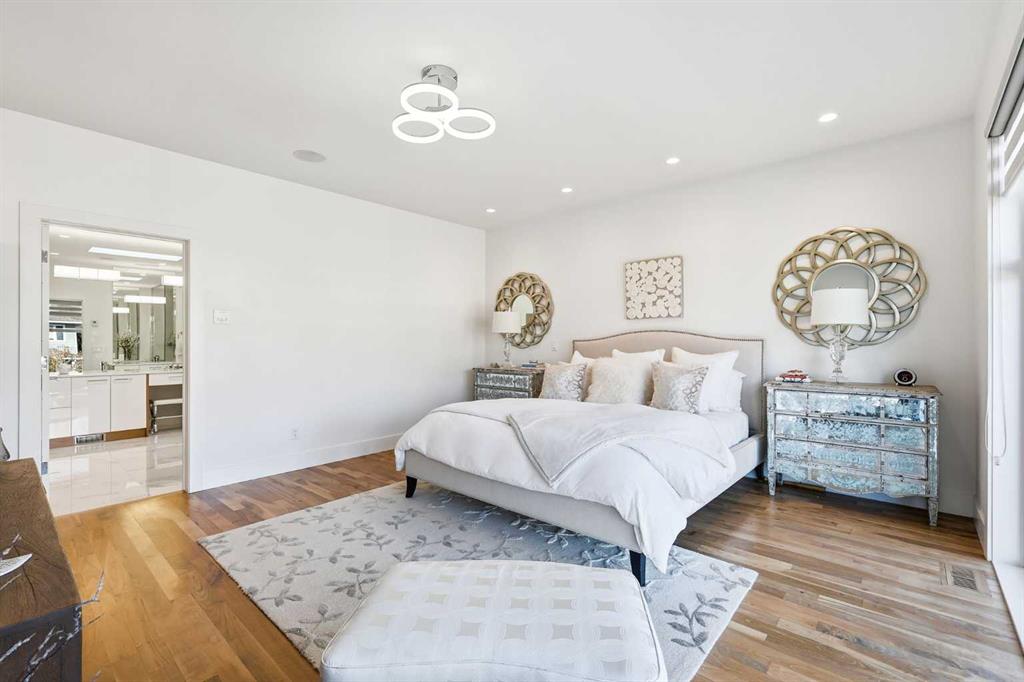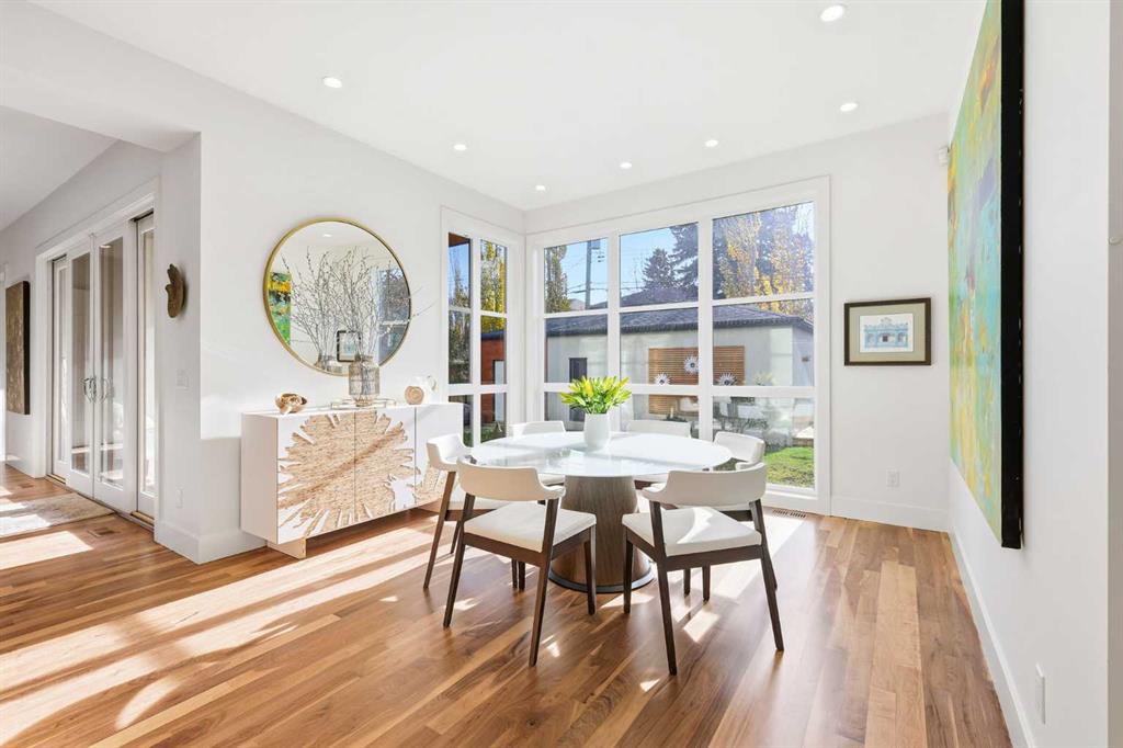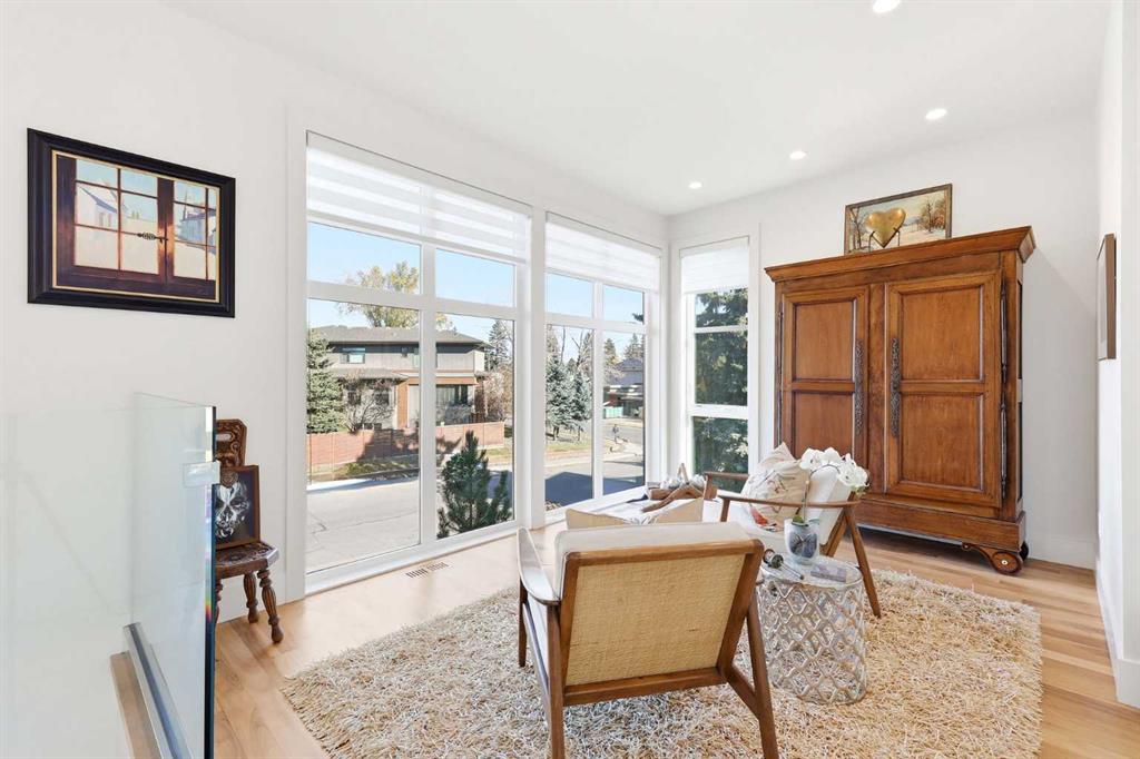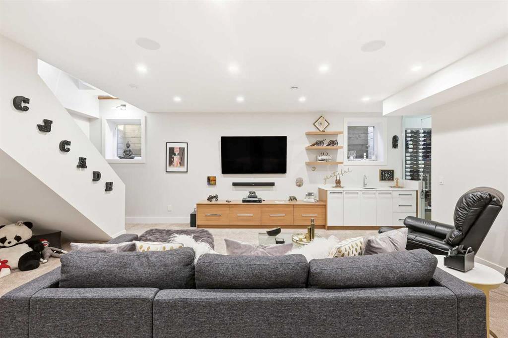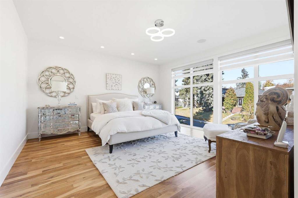 Experience refined contemporary living in this exceptional Elboya residence, offering over 3,600 square feet of luxurious space designed for comfort and style. This sophisticated home features 5 bedrooms, 3.5 bathrooms, and a south-facing backyard with a covered deck—all set along a beautiful tree-lined street. The main level impresses with 10-foot ceilings and exotic walnut hardwood floors, complemented by a bright formal dining room, private office, and inviting family room. The chef-inspired kitchen showcases Miele appliances, a large island with quartz countertops, custom cabinetry, a spacious butler’s pantry, and premium Riobel and Brizo fixtures.