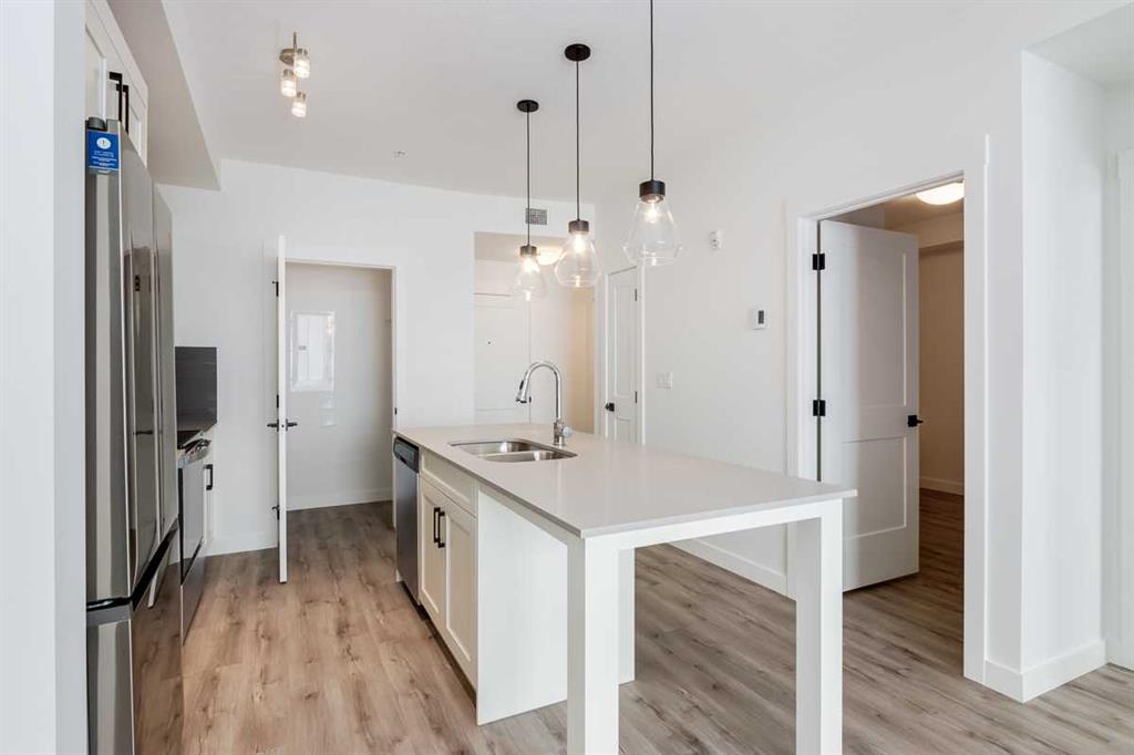 Welcome to this beautifully upgraded 2-bedroom, 1-bathroom main-floor unit in the sought-after community of Seton, located in the Seton West complex. Featuring 9’ ceilings, luxury vinyl plank flooring, and a bright open-concept layout, this home offers modern comfort and effortless living. The contemporary kitchen showcases quartz countertops, stainless steel appliances, and a large island with built-in dining. Oversized patio doors lead to your private, full-width east-facing patio overlooking greenspace — complete with a gas BBQ hookup and convenient ground-floor access. Two well-sized bedrooms, a pristine 4-piece bath, walk-in laundry with custom cabinetry, pantry storage, titled underground parking, and a separate storage locker add everyday functionality. Enjoy unbeatable walkability to shopping, dining, schools, South Health Campus, and the YMCA Calgary – Brookfield Residential YMCA at Seton, with quick access to Deerfoot Trail and Stoney Trail. Perfect for first-time buyers, downsizers, or investors — move-in ready and not to be missed!