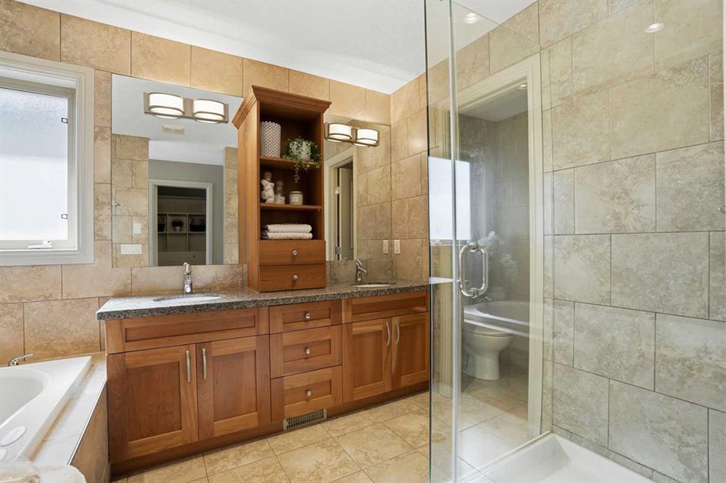 Heading upstairs, you’ll find THREE WELL APPOINTED BEDROOMS. The primary suite is a true retreat, featuring vaulted ceilings that add a sense of openness, its own gas fireplace for cozy nights, a walk-in closet, and a spa-inspired five-piece ensuite designed for relaxation. Two additional bedrooms and a full bathroom complete this level, perfect for family or guests.