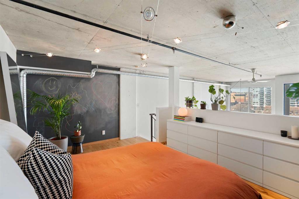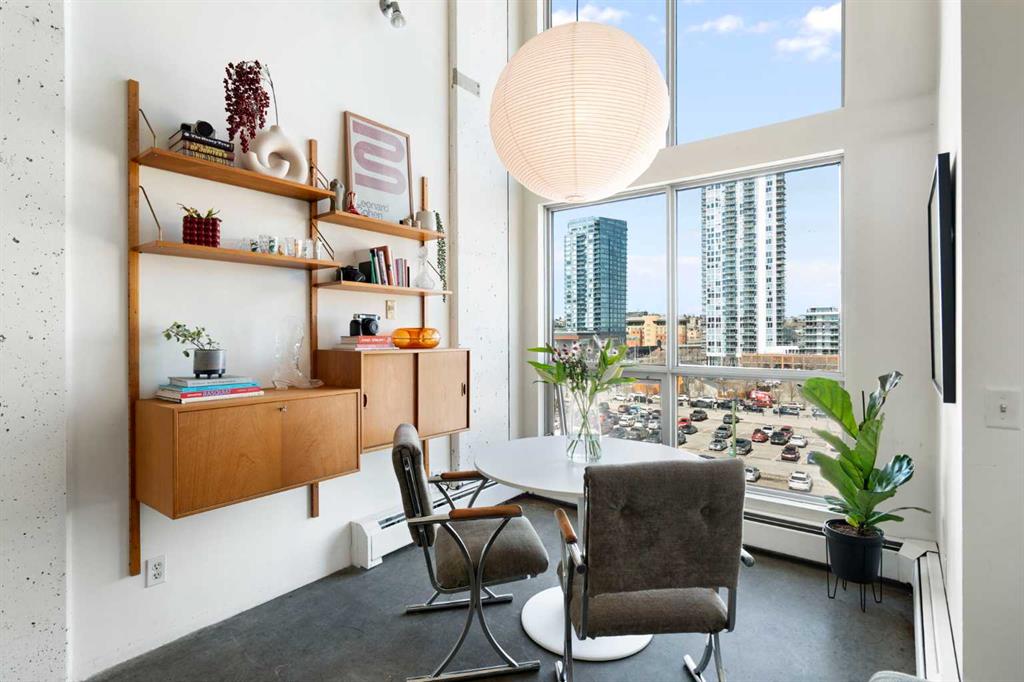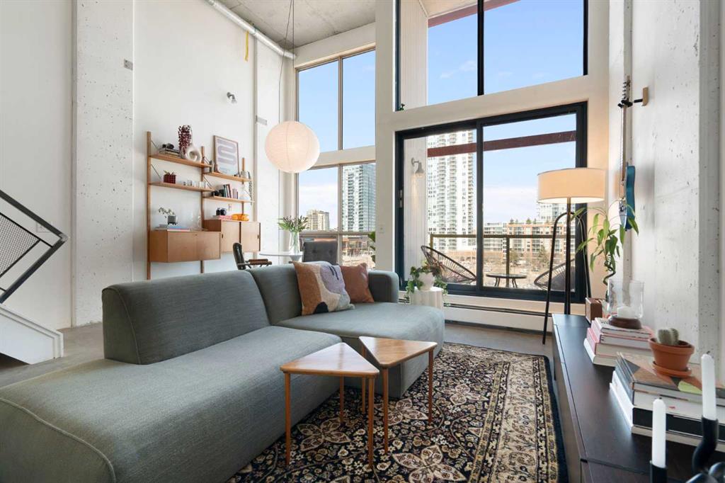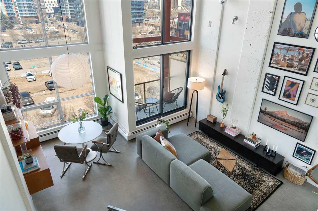 Welcome to a truly distinctive New York–inspired loft in the heart of Calgary, where industrial design meets modern versatility. Defined by soaring 16-foot ceilings and dramatic floor-to-ceiling north-facing windows, this one-of-a-kind space is flooded with consistent natural light while maintaining a comfortable, even temperature year-round. The open-concept layout is both striking and functional, offering a seamless blend of living, dining, and workspace zones. Polished concrete floors anchor the main level with an urban edge, while warm wood accents on the upper level and stairs add balance and character. Exposed mechanical elements and clean architectural lines create an authentic loft aesthetic rarely found in the city—an ideal backdrop for those who appreciate design, creativity, and flexibility in how they live and work. With zoning that supports both residential and commercial use, this property opens the door to a range of possibilities—from a stylish home base to a live/work studio or boutique office. It’s a space that adapts as your lifestyle evolves. Set within a quiet, pet-friendly, boutique building, residents enjoy a strong sense of community paired with rare inner-city tranquility. Amenities include a rooftop patio with gas BBQ hookups and skyline views, a landscaped courtyard, and a versatile common room with future fitness potential. A heated underground parkade adds everyday convenience, while condo fees that include heat, water, and electricity offer exceptional value and simplicity. A no short-term rental policy further reinforces the building’s peaceful, residential feel. Ideally located, this home offers immediate access to major roadways, making commuting simple and efficient. You’re just minutes from the Bow and Elbow rivers, extensive walking and biking pathways, and some of Calgary’s most vibrant neighborhoods, including Inglewood and Victoria Park. Enjoy close proximity to local cafes, restaurants, and nightlife, as well as the iconic Stampede Grounds. With transit located right outside your door, this is truly a connected and convenient urban lifestyle. Positioned in an area experiencing significant growth and revitalization, this property also presents a compelling investment opportunity, with future development and the new Scotiabank Saddledome project expected to further enhance long-term value. More than just a condo, this is a statement space, offering a rare combination of design, location, lifestyle, and community.