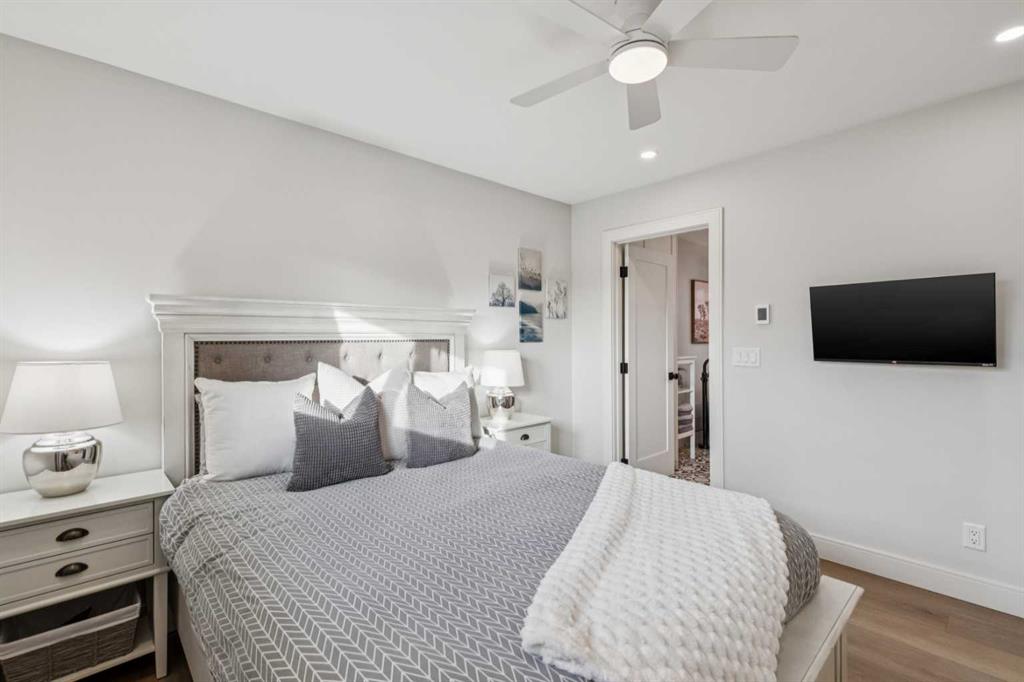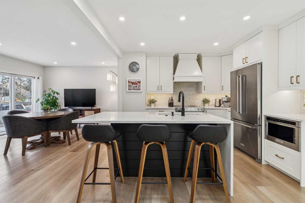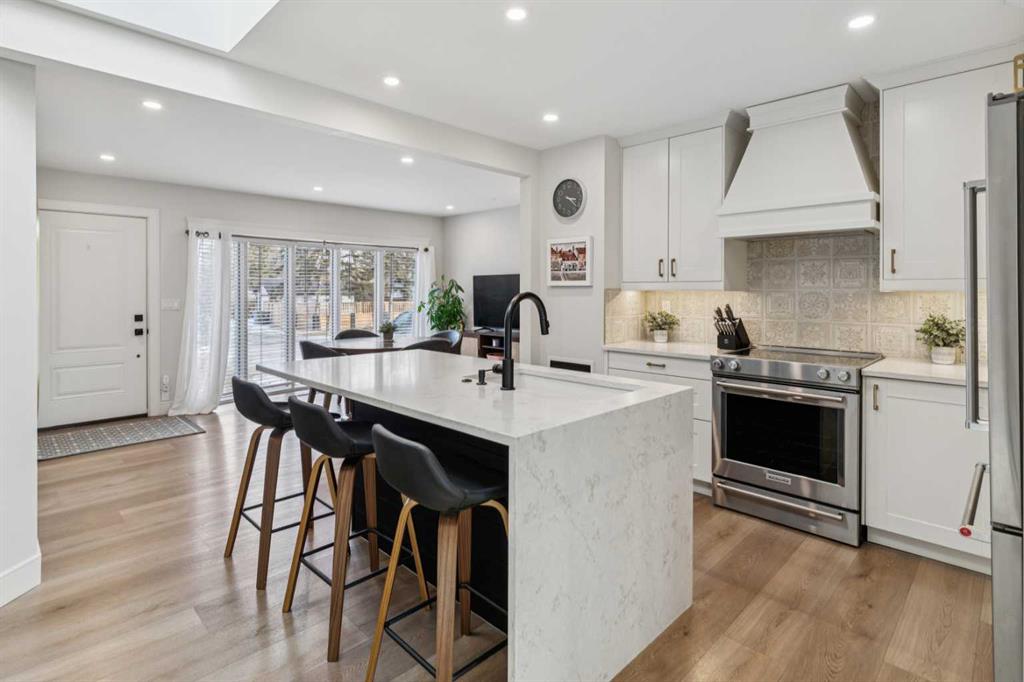 Perfectly situated at 412 Athlone Rd SE, this bungalow has been transformed through a comprehensive “to the studs” renovation where every detail was crafted from the ground up. From the moment you arrive, the striking Hardie board exterior and professional landscaping hint at the quality within. Inside, the layout is defined by a seamless flow and an abundance of natural light, anchored by luxury vinyl plank flooring with premium cork soundproofing that runs throughout the main level. The heart of the home is a chef-inspired kitchen that balances high-end function with show-stopping style. A massive quartz waterfall island serves as the social hub, complemented by an Italian ceramic backsplash, a custom range hood, and a suite of professional KitchenAid appliances. A bright skylight overhead ensures the space feels airy and open, while the adjacent sunroom—featuring a Pacific Energy wood-burning stove—offers a cozy sanctuary for any season. The primary suite is a true retreat, offering custom built-ins and a spa-inspired ensuite that rivals a luxury hotel. Indulge in the standalone deep soaker tub or the curbless glass-enclosed rain shower, all set against a backdrop of heated Italian ceramic floors and designer Delta fixtures. This level is thoughtfully designed for versatility, featuring an additional well-appointed bedroom and a refined 4-piece main bathroom, also elegantly finished with Italian ceramic tile and heated floors. The living space extends into the fully developed basement, where you will find two more generous bedrooms and a protected Dricore subfloor system for year-round warmth. This level also hosts a large, dedicated laundry room equipped with high-efficiency Electrolux appliances and convenient storage. Beyond the aesthetic, the home’s infrastructure has been completely modernized with R60